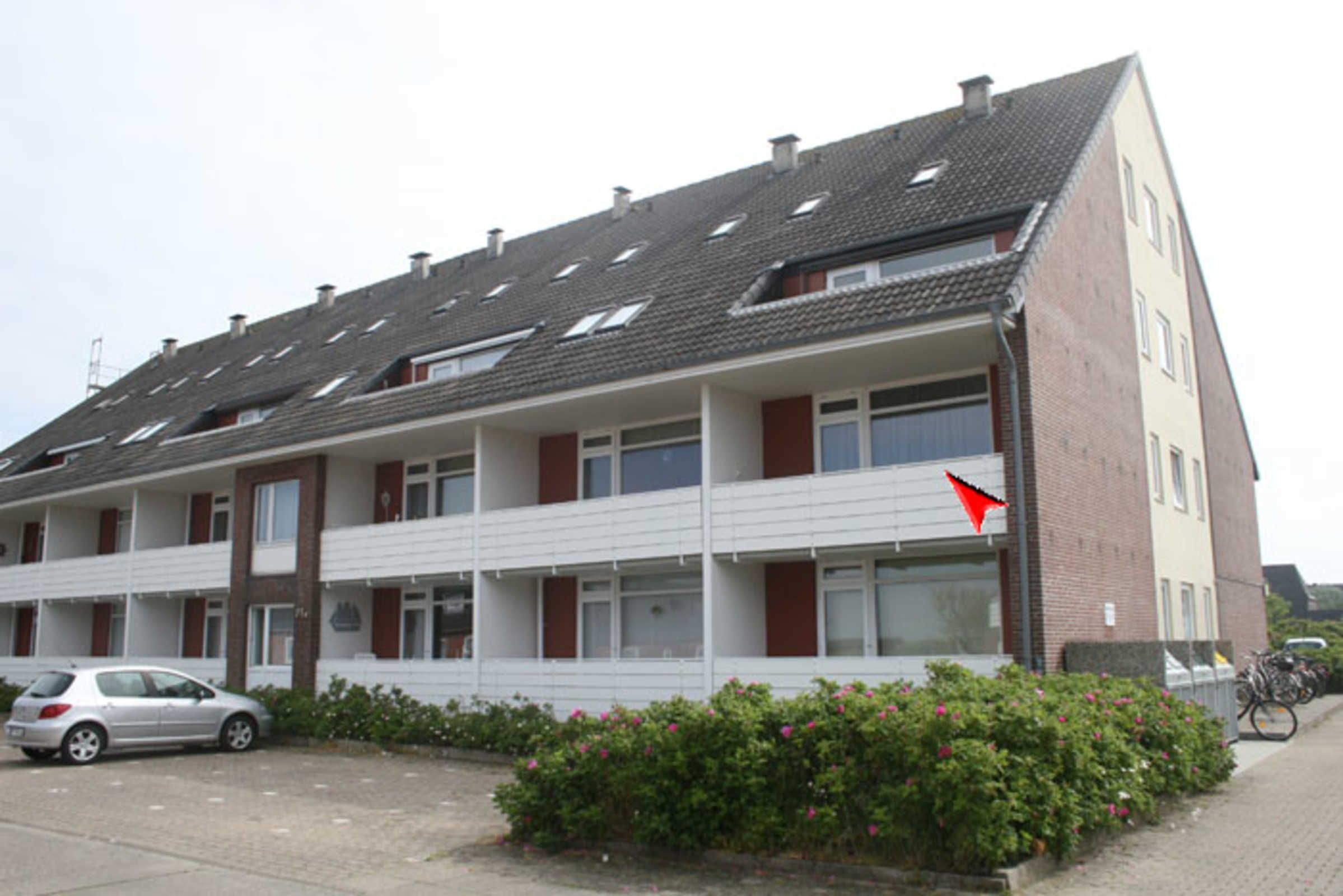 Die Wohnung Ferlings liegt nur wenige Gehminuten vom Weststrand entfernt. Zur Wohnung gehört ein Pkw-Stellplatz direkt vor dem Haus.