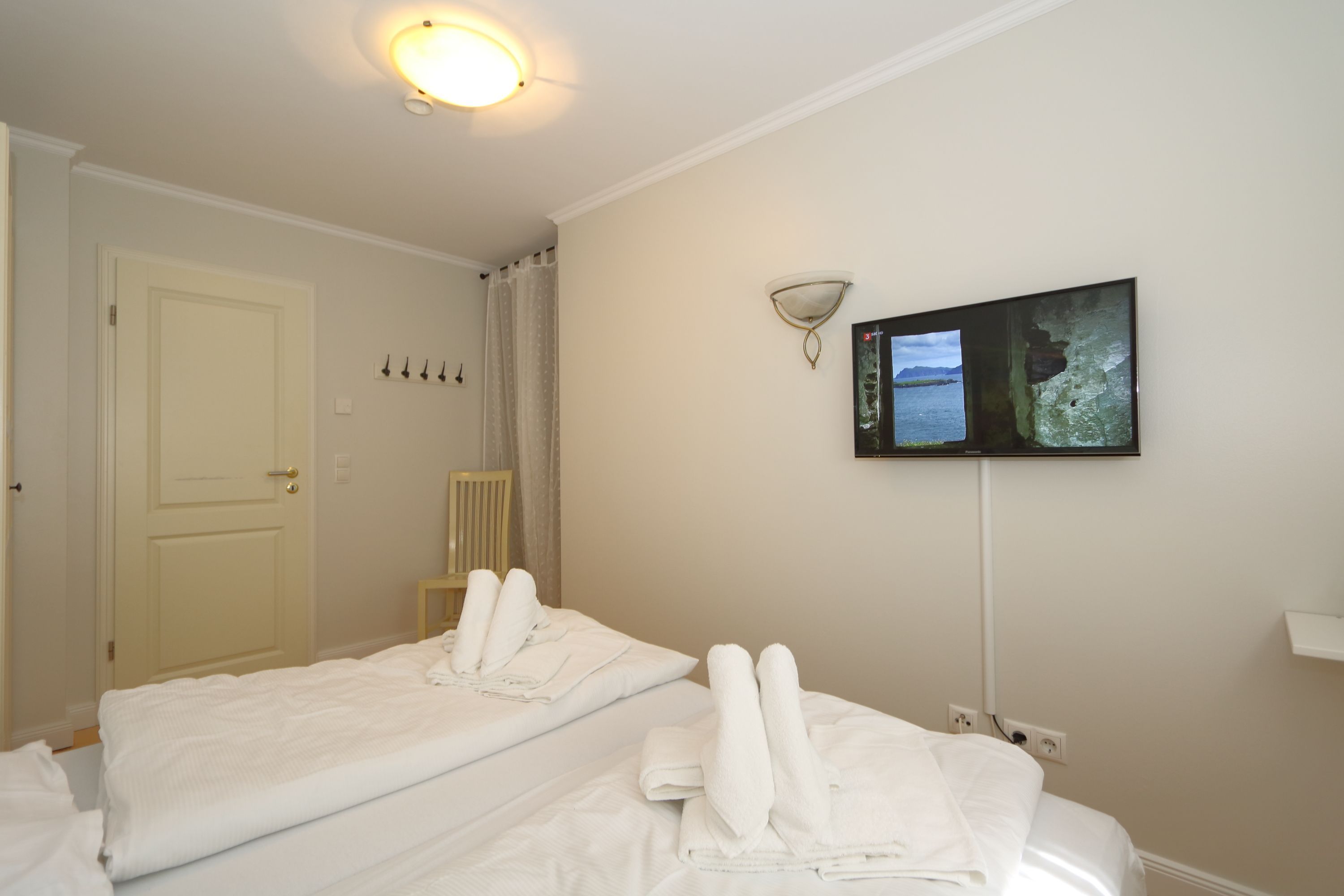 Schlafzimmer 1: Doppelbett (Matratzengr. ca. jeweils 90x200cm), Fernseher
