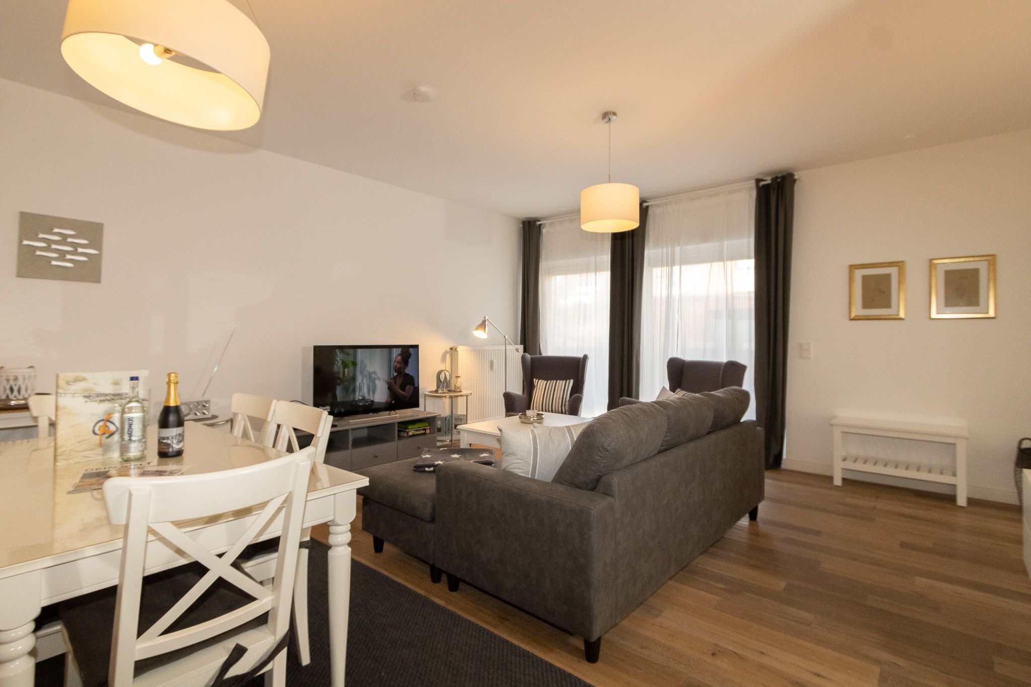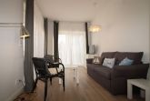 Sehr großzügige Ausstattung mit viel Platz zum Erholen. Die Wohnung ist in einen kombinierten Wohn-Schlafraum mit Küchenzeile und Esstisch, ein sehr großzügiges Schlafzimmer mit angrenzendem Duschbad sowie ein weiteres Schlafzimmer mit einem weiteren Duschbad ausgestattet. Der Esstisch, der sich auch im Wohnbereich befindet, bietet Platz für 6 Personen. Hier können Sie Freunde bewirten und verwöhnen. Neben dem zweiten Schlafzimmer liegt noch ein kleines Lesezimmer, das für die richtige Entspannung sorgen kann. Die Terrassenbestuhlung steht schon für die Sonnenstunden des Urlaubs bereit.