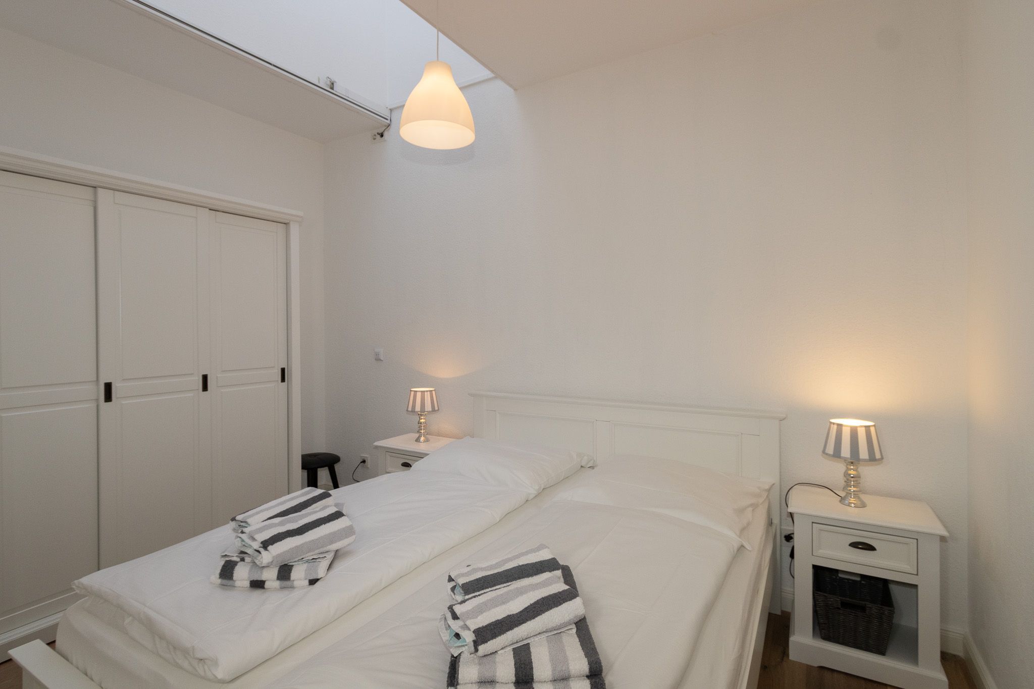 Komplett neu renovierte und sehr großzügige Wohnung für 4 Personen. Sehr geschmackvoll in der Einrichtung mit 2 Terrassen zum Sonnen. Sehr großzügige Ausstattung mit viel Platz zum Erholen. Die Wohnung ist in einen kombinierten Wohn-Schlafraum mit Küchenzeile und Esstisch, ein sehr großzügiges Schlafzimmer mit angrenzendem Duschbad sowie ein weiteres Schlafzimmer mit einem weiteren Duschbad ausgestattet. Der Esstisch, der sich auch im Wohnbereich befindet, bietet Platz für 6 Personen. Hier können Sie Freunde bewirten und verwöhnen. Neben dem zweiten Schlafzimmer liegt noch ein kleines Lesezimmer, das für die richtige Entspannung sorgen kann. Die Terrassenbestuhlung steht schon für die Sonnenstunden des Urlaubs bereit.
