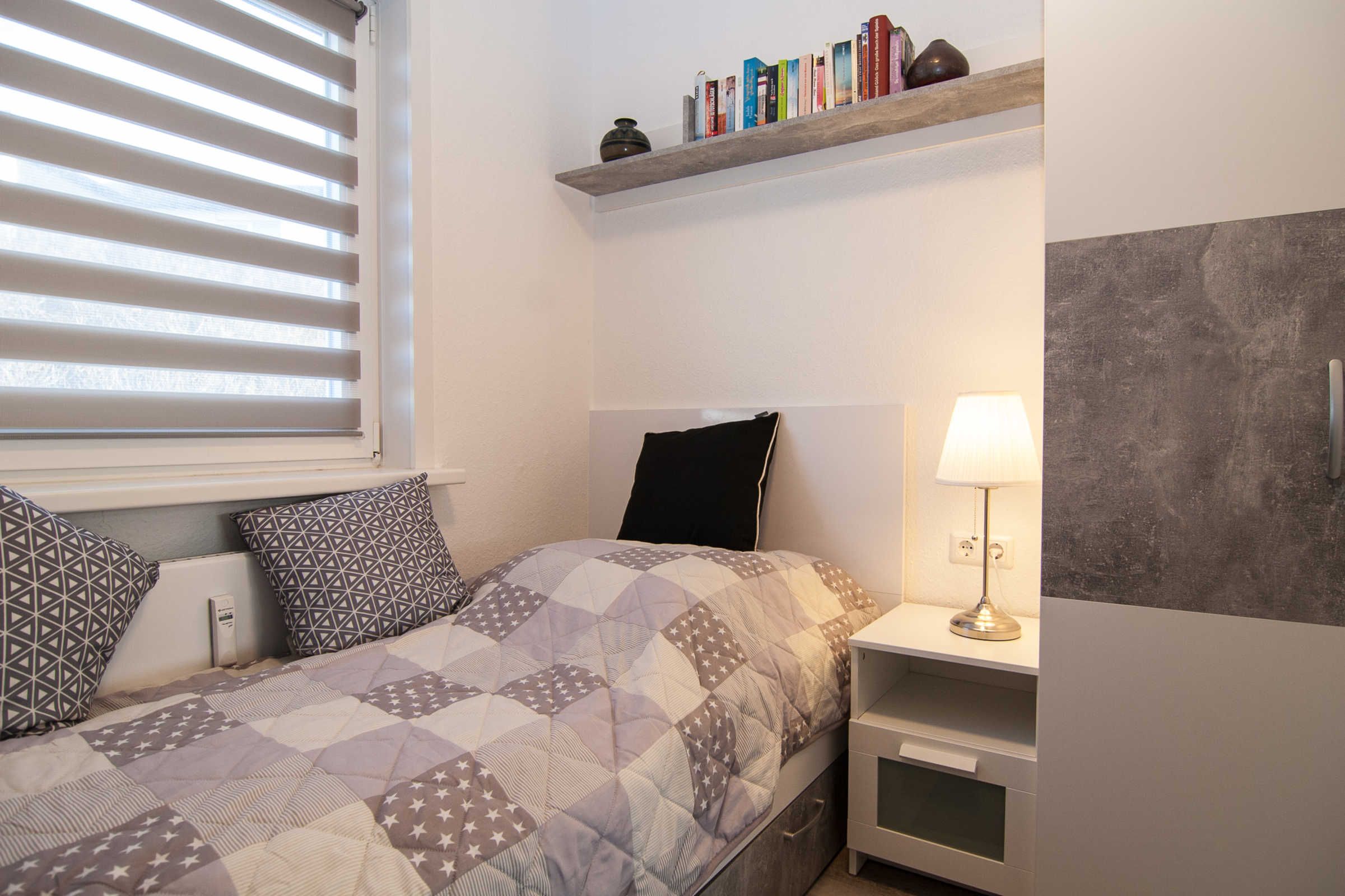Die Ferienwohnung Merten ist für max. 3 Personen ausgestattet. Sie verfügt über ein Schlafzimmer, ein separates Zimmer (3.Person) sowie über ein großzügiges Wohnzimmer mit Essbereich wo auch die Küchenzeile mit integriert ist. Die Küchenzeile ist neben den üblichen Küchenutensilien mit einem Geschirrspüler und einem Zwei-Platten Induktions-Kochfeld ausgestattet ist.