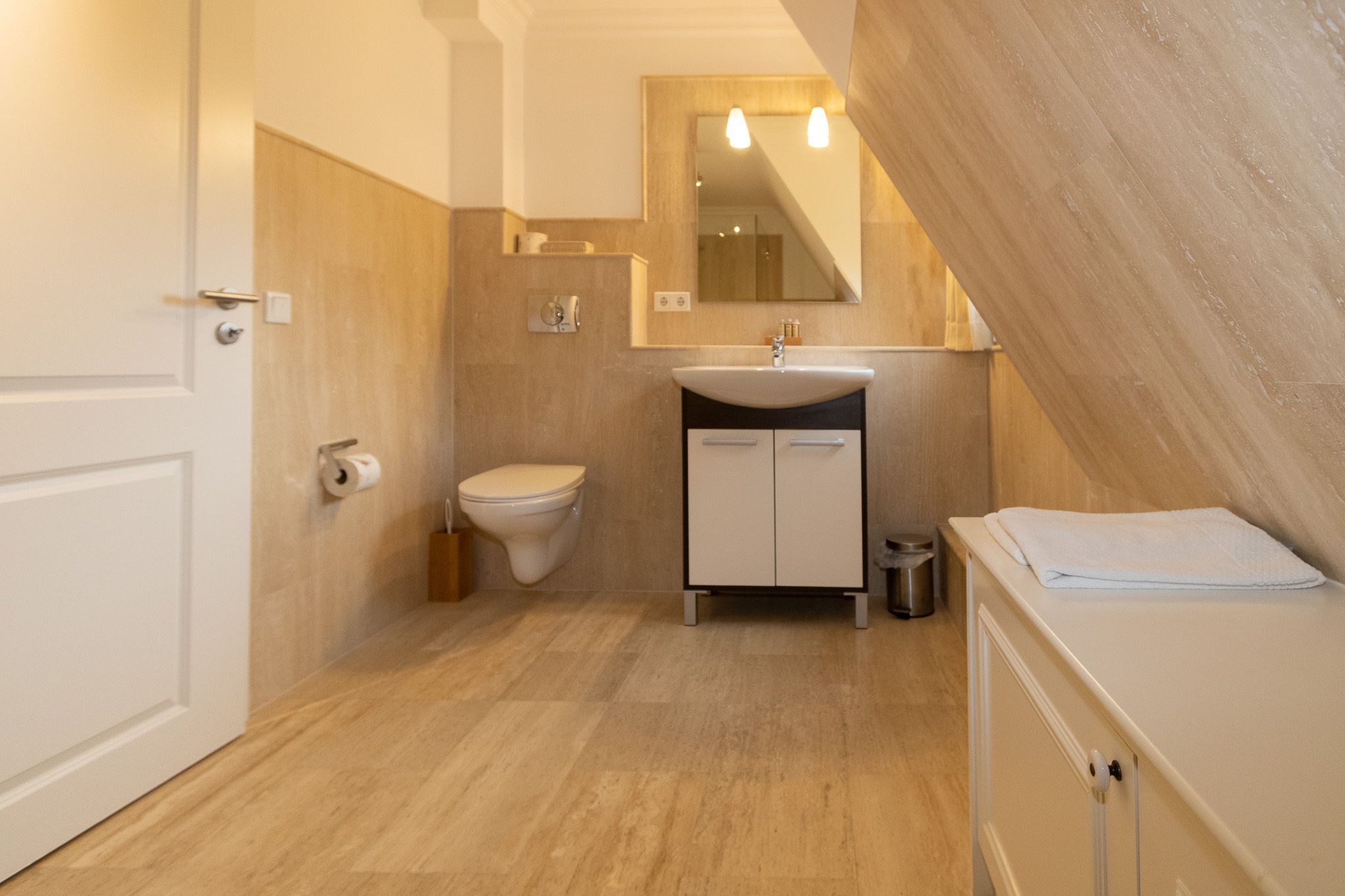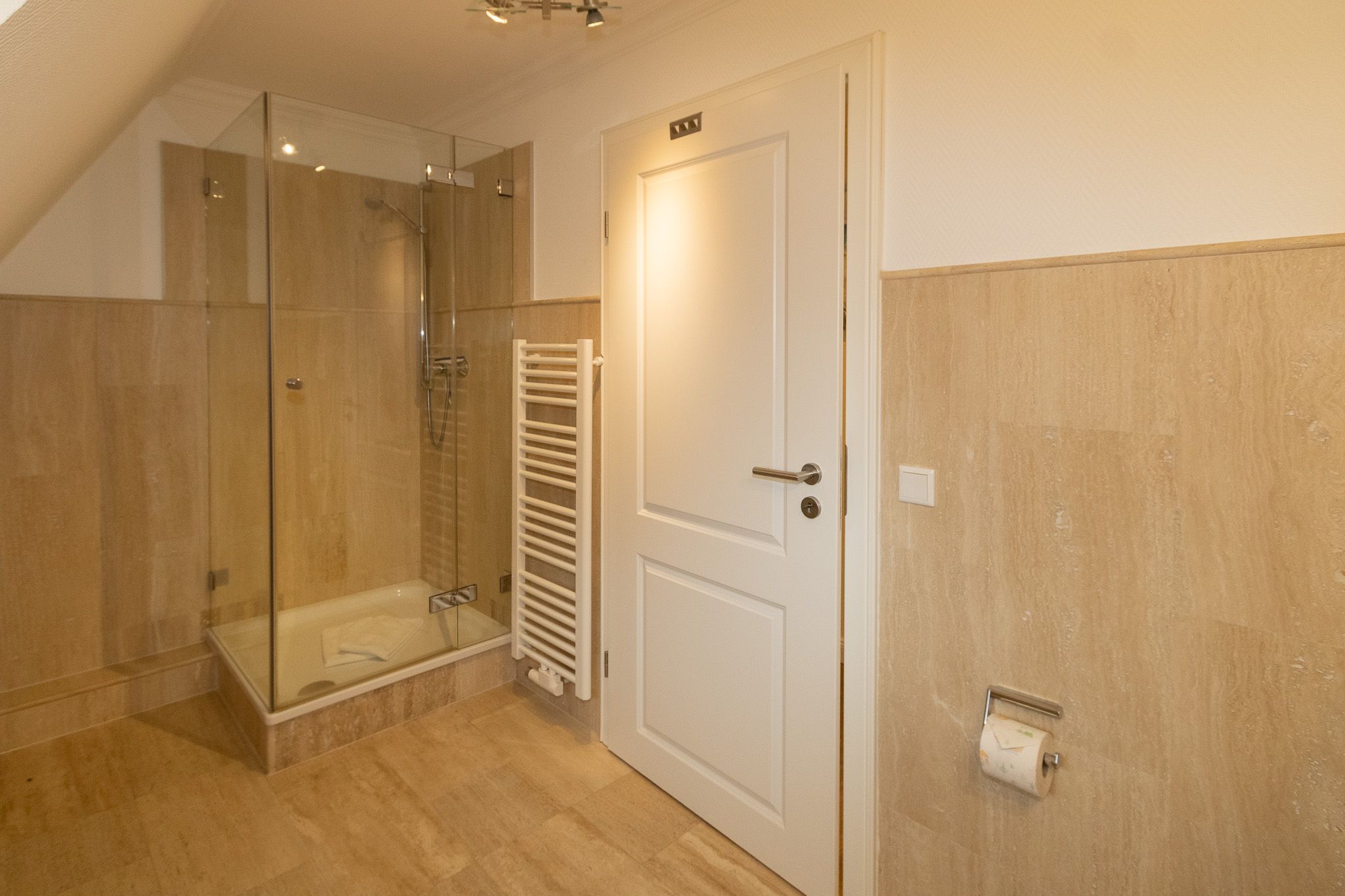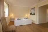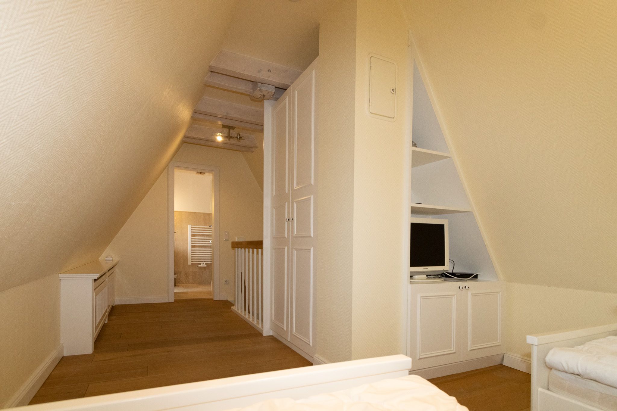 Die exklusive Haushälfte Golfhouse 1, die in 2012 komplett renoviert wurde, befindet sich in einer ruhigen Seitenstraße in Nähe des Golfplatzes. Auf 145 qm Wohnfläche erwartet Sie eine Hohe Qualität an stimmiger Einrichtung, zahlreichen Maßeinbauten und hochwertige Echtholzdielen. Ihr eigener Parkplatz, befindet sich direkt vor dem Haus. In den drei Schlafzimmern haben Sie Platz zum Schlafen für 6 Personen. Ein Schlafzimmer mit einem großen Doppelbett und ein Schlafzimmer mit einem franz.Bett befinden sich im OG. Ein weiteres Schlafzimmer mit zwei Einzelbetten liegt im DG. Alle Schlafzimmer sind mit weißen Maßeinbauten und jeweils einem eigenen Flachbildschirm ausgestattet.
