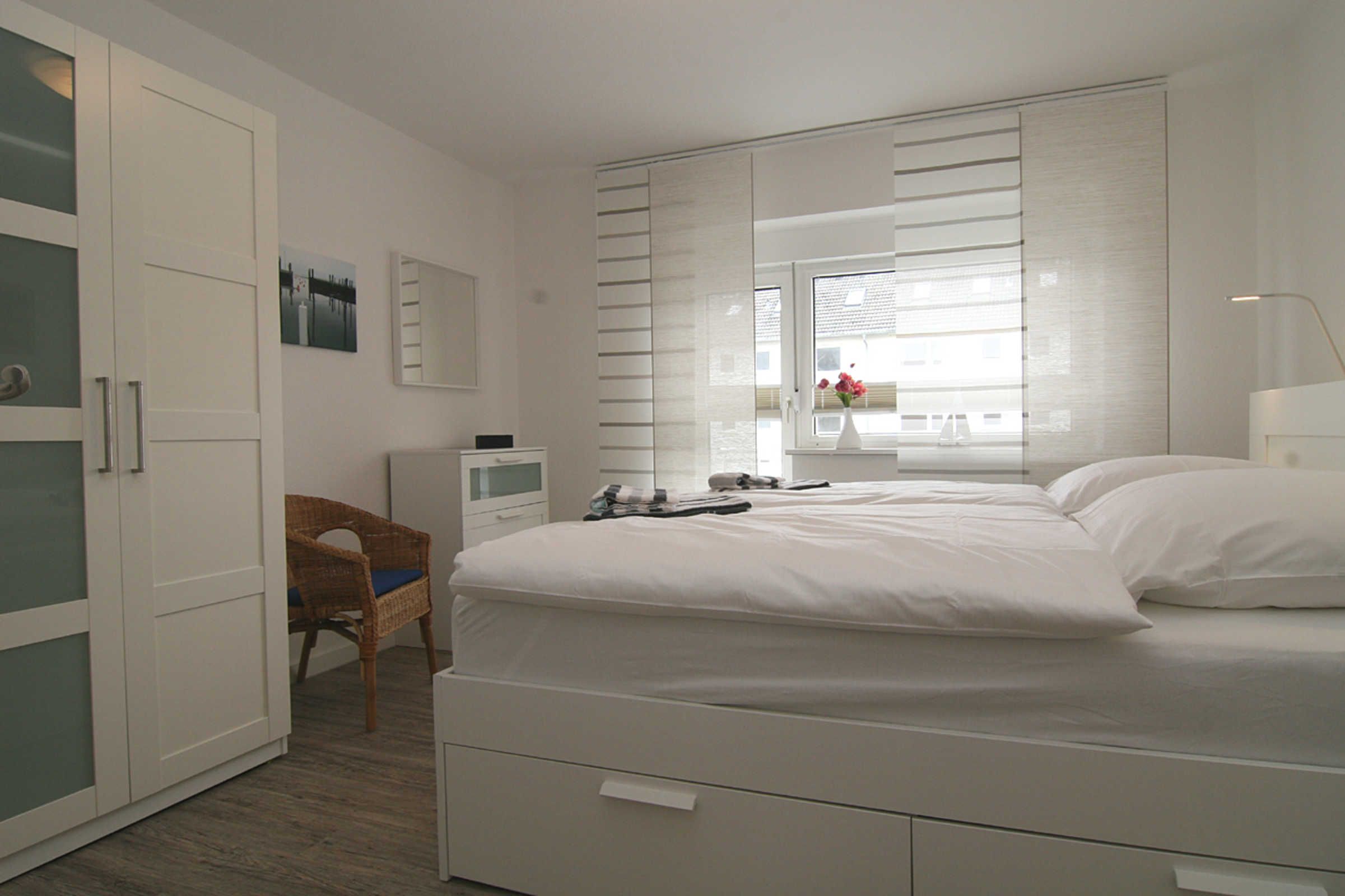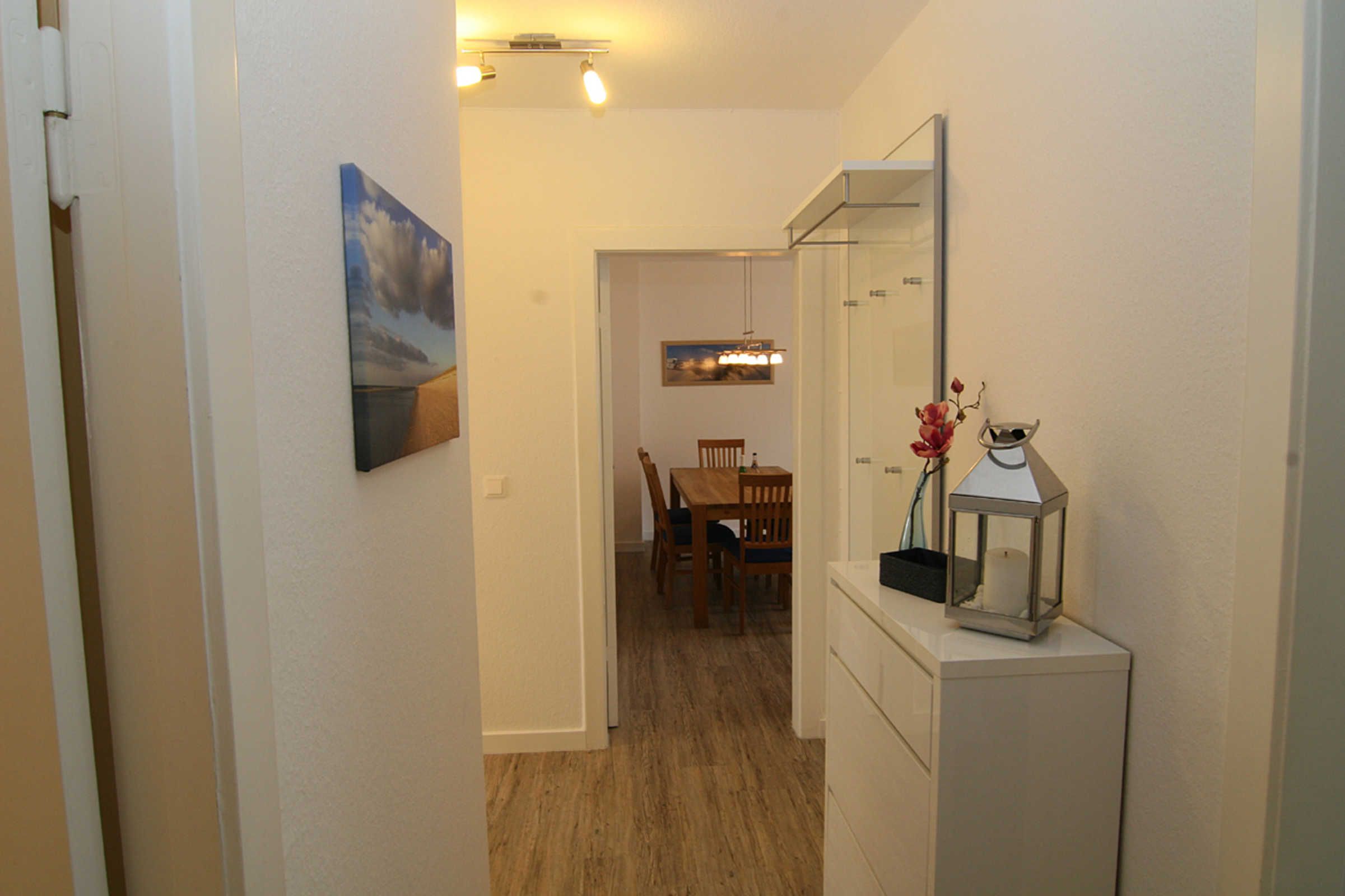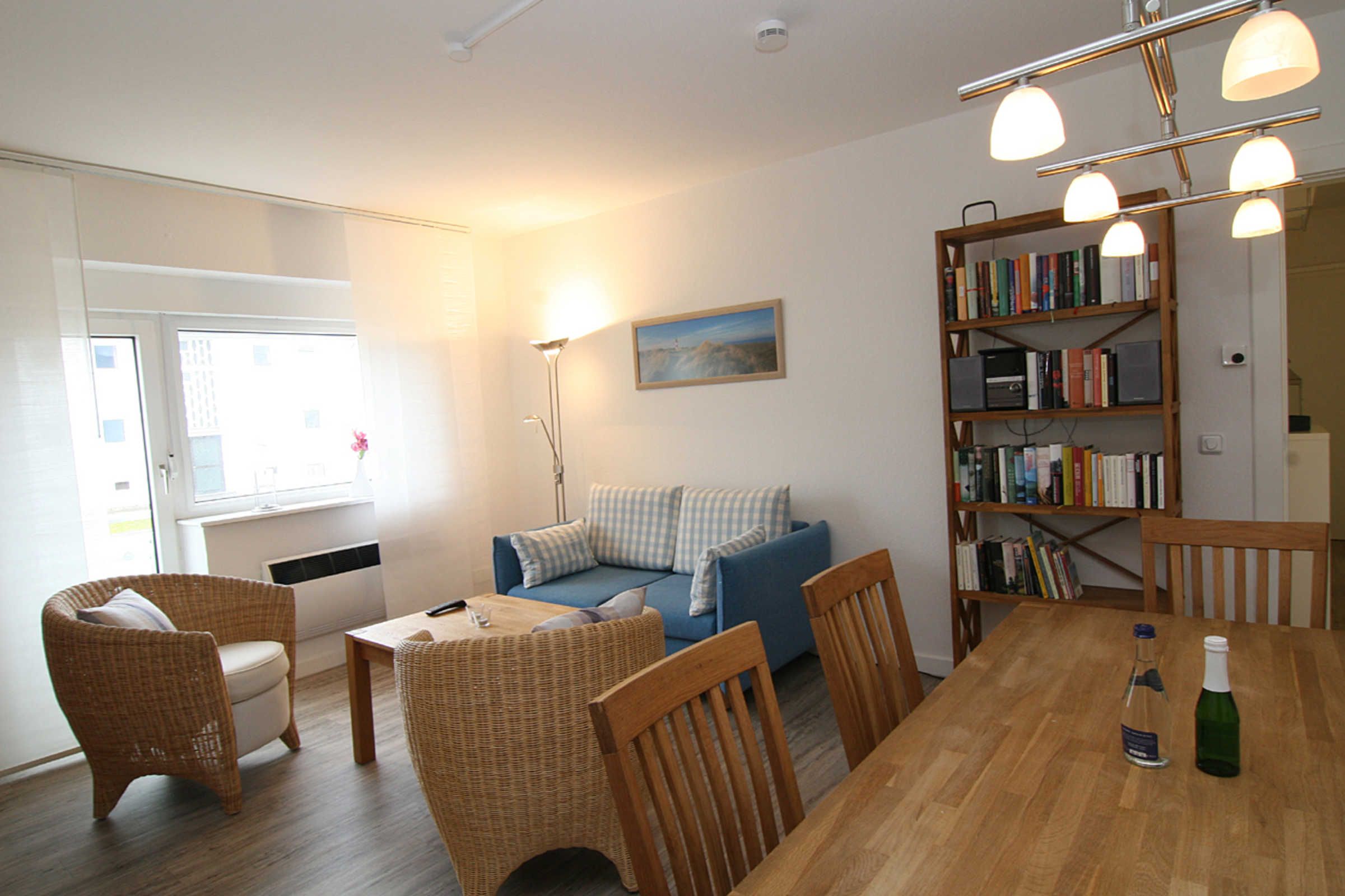 Die Wohnung verfügt über ein modern eingerichtetes Wohnzimmer mit einem großen Esstisch und einer Sitzgruppe. Das neue Sofa ist ausziehbar. In den beiden Schlafzimmern befinden sich jeweils Doppelbetten. Das Badezimmer ist mit einer Dusche ausgestattet. Die moderne Küche bietet Spülmaschine, Elektroherd mit Backofen, Mikrowelle, Kühlschrank mit Gefrierfach, Kaffee- und Espresso-Maschine. Reichhaltiges Geschirr und diverse Küchen-Utensilien stehen zur Verfügung.