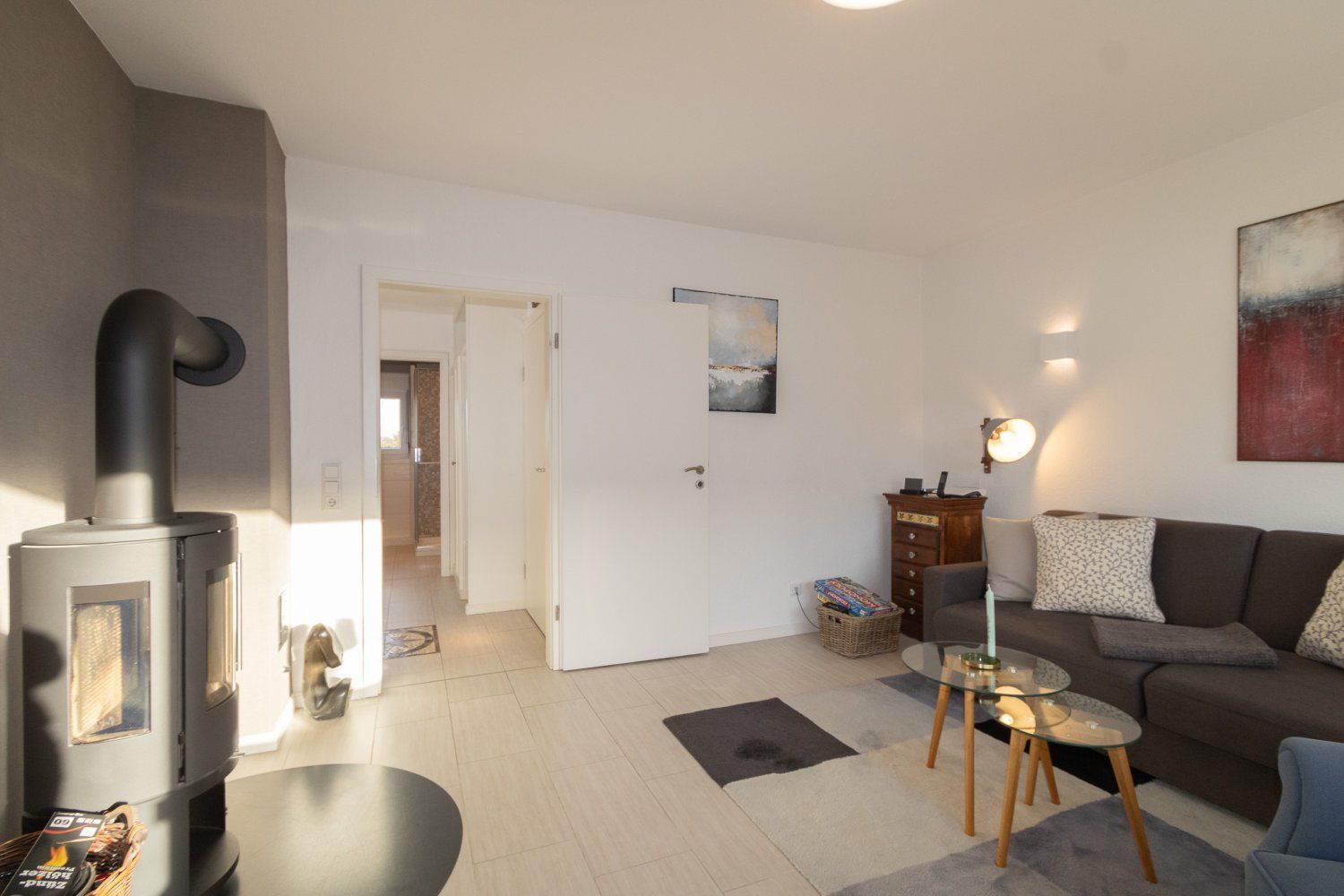Gemütlich und mit viel Liebe zum Detail ist diese 2-Raum-Ferienwohnung eingerichtet. Sie verfügen über einen Wohnraum mit Balkon und Terrasse zum Süden, ein seperates Schlafzimmer, eine Küche mit Essbereich, die vollständig und komplett eingerichtet ist, und ein Duschbad. Für die 3. Person (bis 12 Jahre) steht im Wohnraum eine bequeme Schlafcouch zur Verfügung. Über den Balkon vom Wohnzimmer aus kommen Sie auf die mit Gartenmöbeln ausgestattete Terrasse, auf der Sie den ganzen Tag die Sonne geniessen können. Der Kaminofen ist neu und kann benutzt werden, wobei das Kaminholz sich selbst besorgt werden muss. Es handelt sich um eine Nichtraucher-Wohnung. Wer rauchen möchte kann gern den Balkon benutzen.