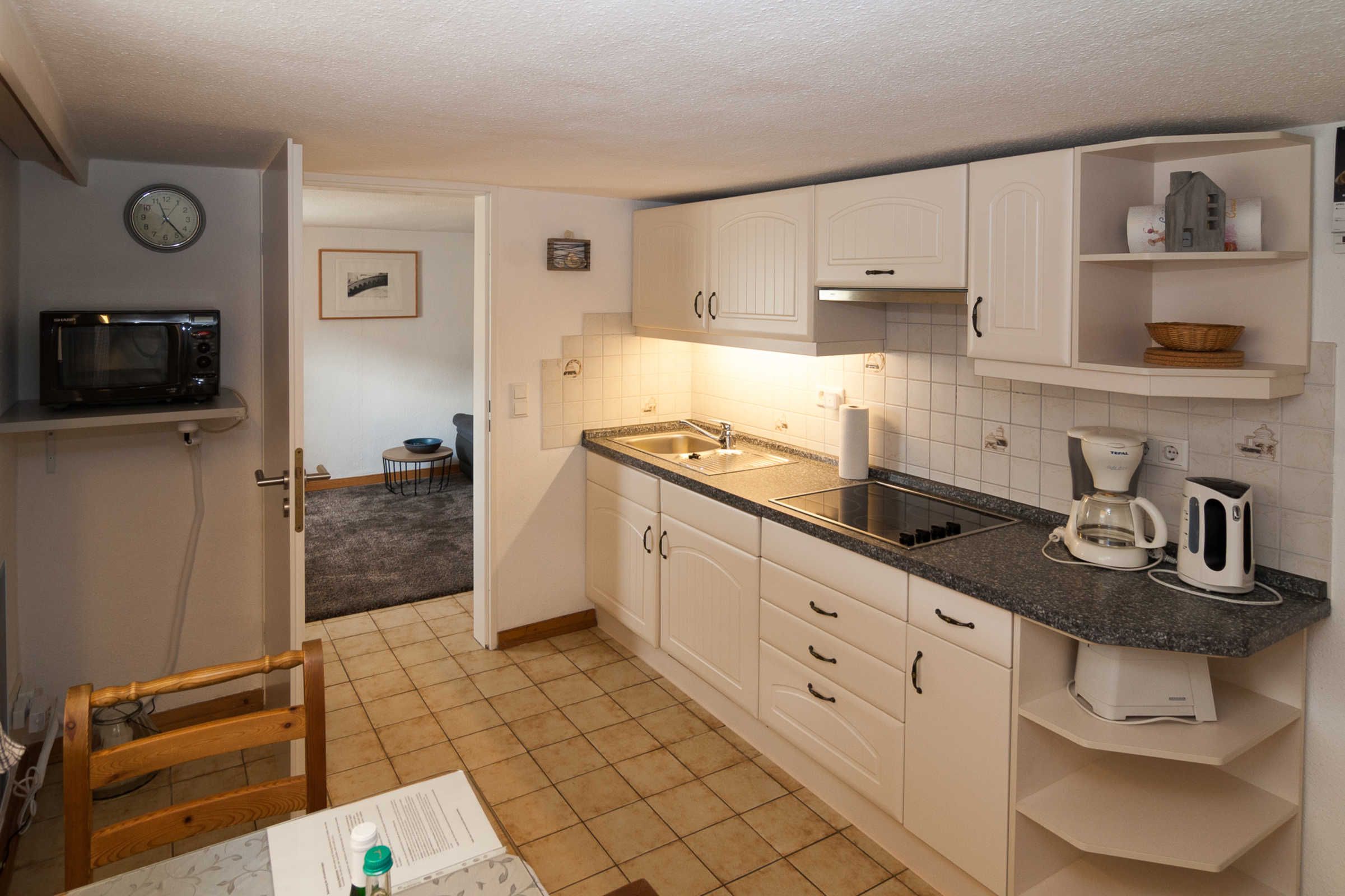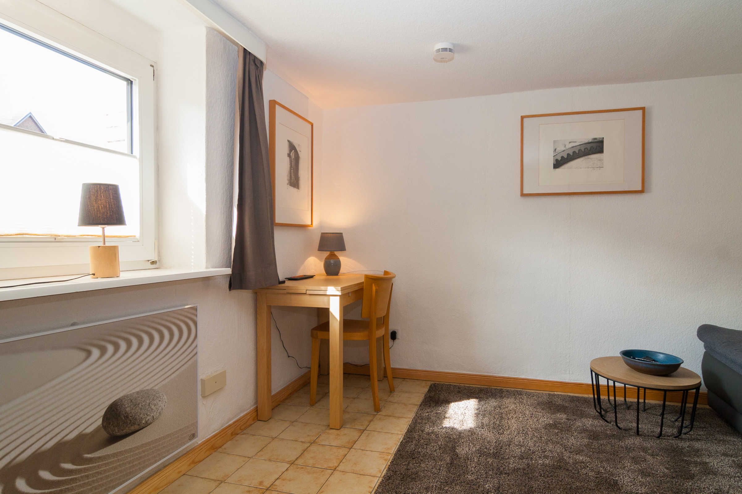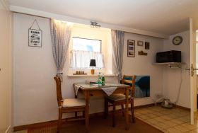 Diese Wohnung verfügt über 2 Räume: Einen kombinierten Wohn-/Schlafraum mit Schlafcouch und einen zweiten Raum mit Essecke und einer neuen Küche. Des weiteren ist ein innenliegendes Duschbad mit automatischem Ablüfter vorhanden. Die Wohnung ist gemütlich und ansprechend eingerichtet.