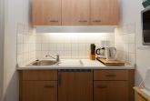 Gepflegtes, allergikerfreundliches 2 Zi.-Appartement im EG mit ca. 27 m², Wohnzimmer mit 2 Sitzer-Couch, 2 Beistellhocker, Tisch, Essplatz am Fenster für 2 Personen, Sat-TV, Radio mit CD-Player; Schlafzimmer mit Doppelbett und Zugang zur Westterrasse; Einbauküche mit 2 Plattenherd und Mikrowelle; Bad mit Dusche/WC; das App. ist komplett mit Laminat ausgelegt.