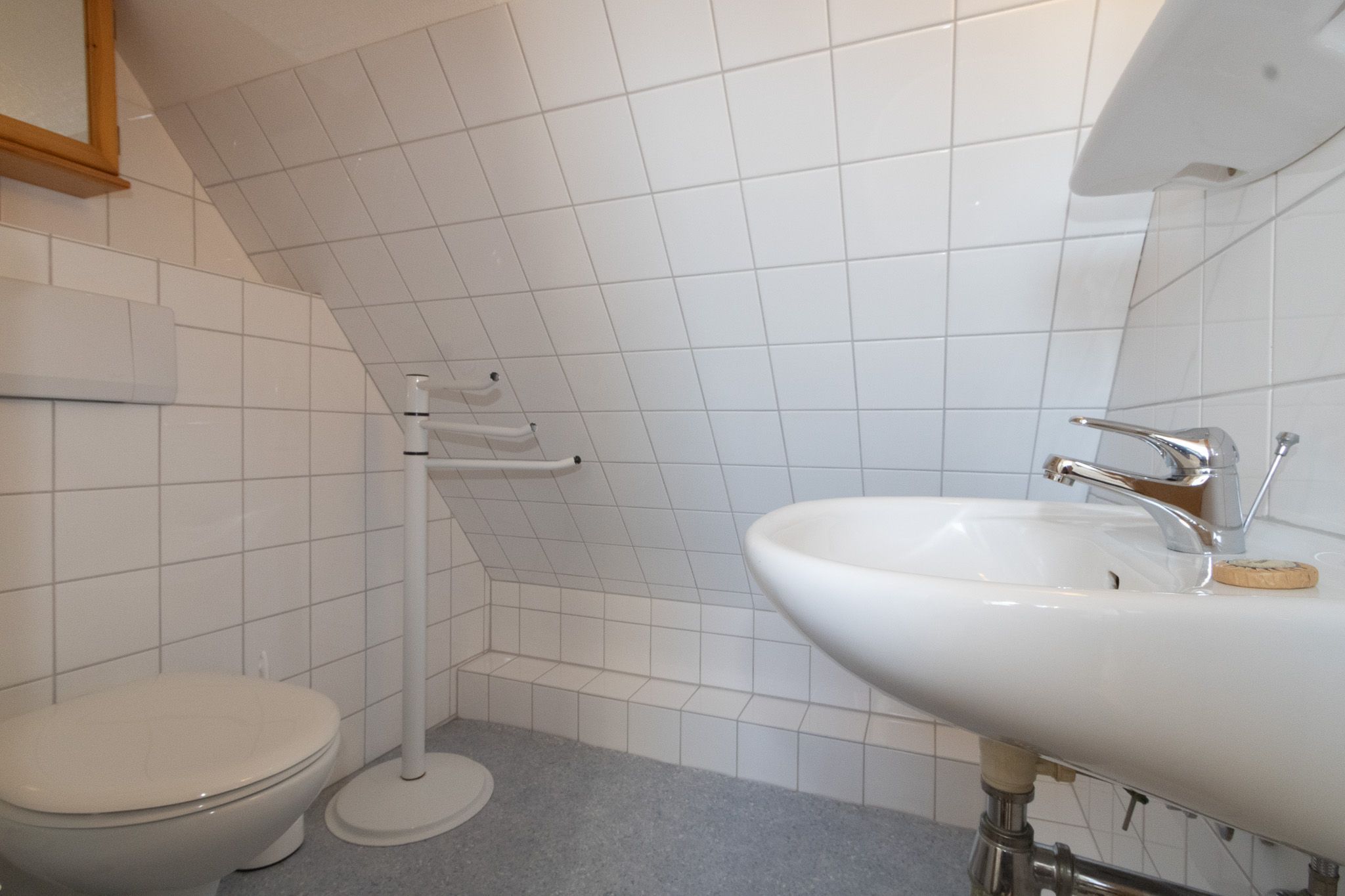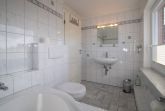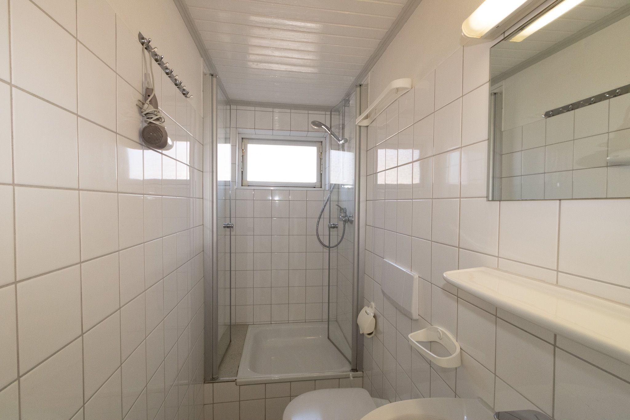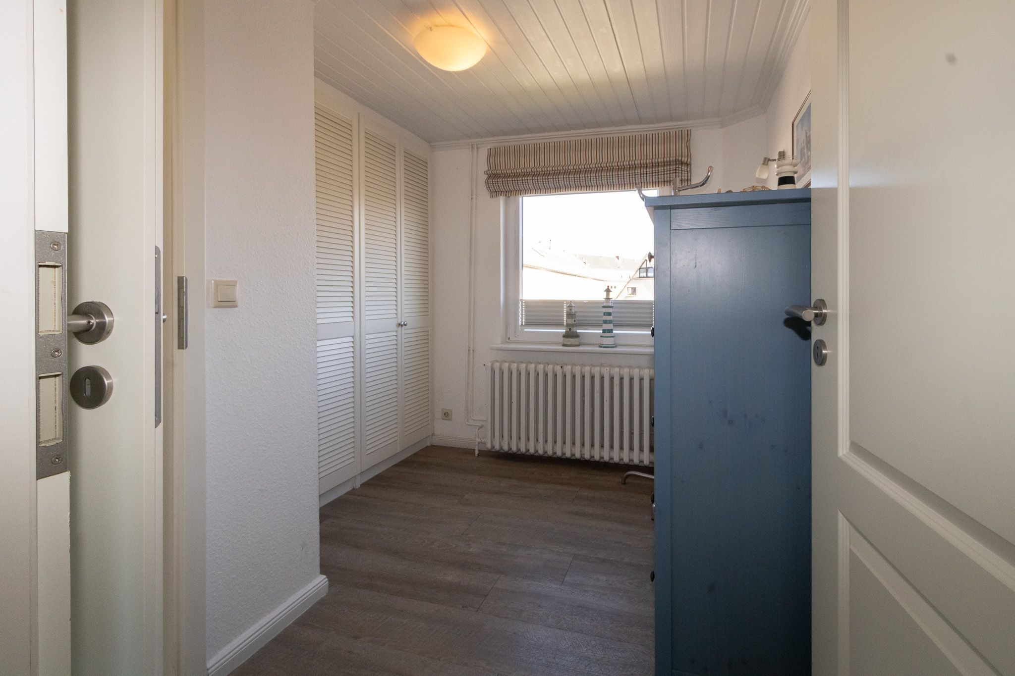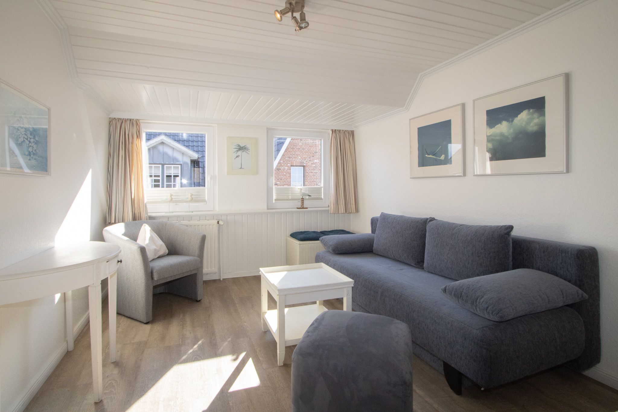 Gepflegtes 5 Zi.-Appartement über OG/DG mit ca. 100 m²; im OG: 1 Wohnzimmer mit Schlafcouch, Tisch, Sidebord und Sat-TV; 1 Schlafzimmer mit Doppelbett und Sat-TV, Ankleidezimmer, Duschbad/WC; 1 Wohnzimmer mit Doppelschlafcouch, Tisch, Couch und Sat-TV; 1 Badezimmer mit Eckbadewanne und WC; Flur mit Gardrobe; separate Einbauküche mit Ceranfeld, Backofen, Mikrowelle, Geschirrspüler, Essplatz für 8 Personen, Radio mit CD-Player, Zugang zur Ost-/Westterrasse mit Bestuhlung; steile Treppe ins DG: 1 Duschbad; 1 separates WC; 1 Schlafzimmer mit Doppelbett und Sat-TV; ein Schlafzimmer mit zwei Einzelbetten.