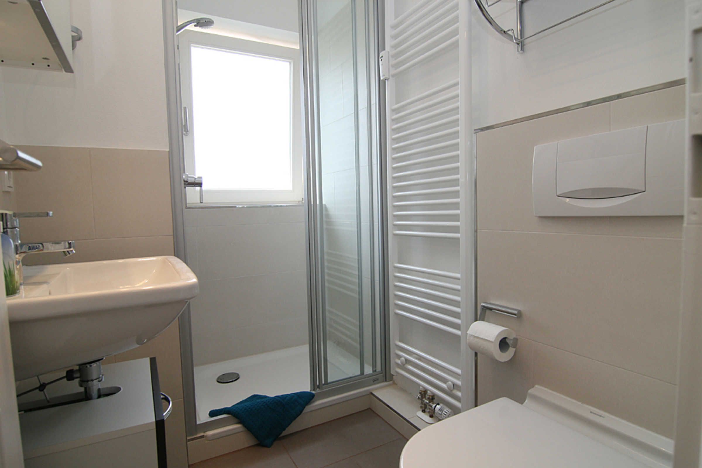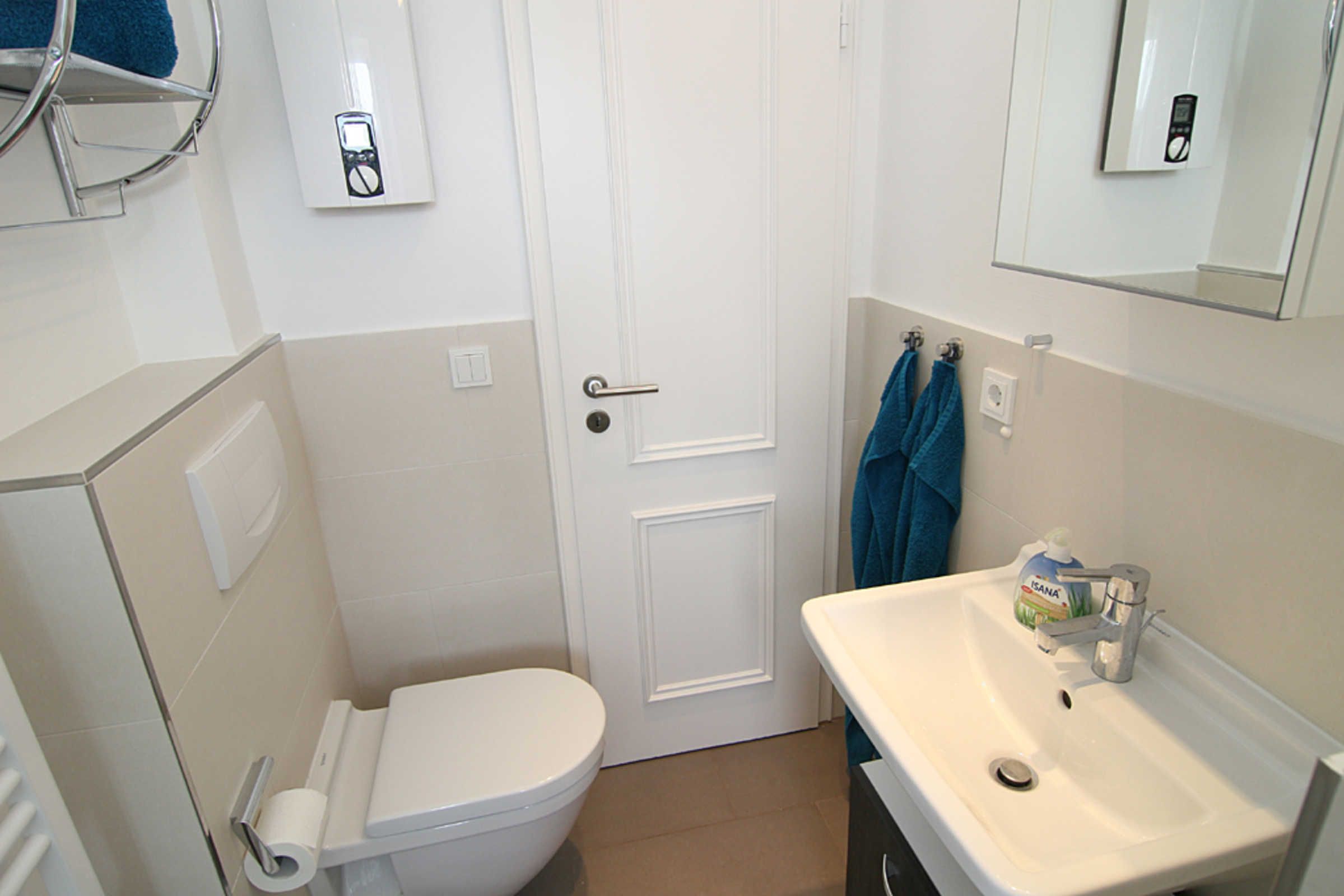 Die Küchenzeile ist ausgestattet mit einem Cerankochfeld mit 2 Platten, einen Backofen, einer Geschirrspülmaschine, einem Kühlschrank mit Eisfach. Neben Kaffemaschine dürfen Toaster und Wasserkocher natürlich nicht fehlen.