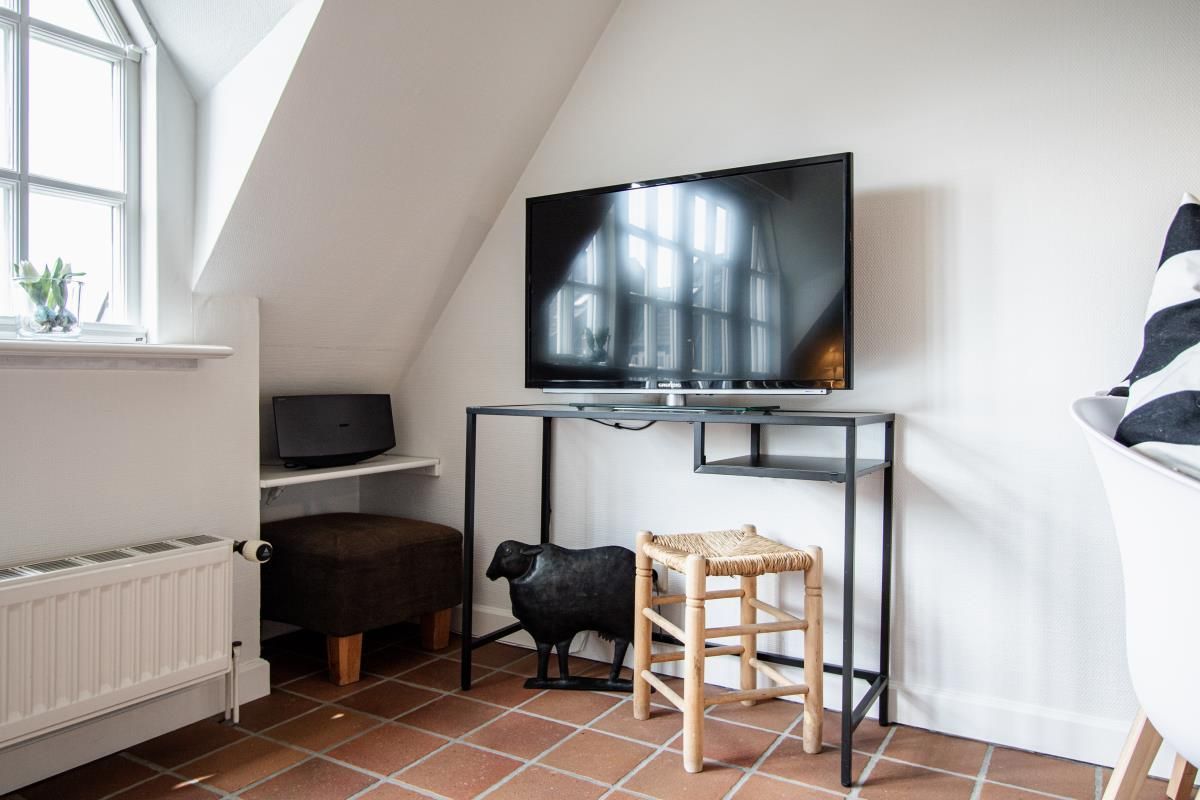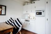 OG: Geschmackvoll eingerichteter, heller Wohnraum mit Kabel-TV, W'Lan. Integrierte Küche mit Geschirrspüler und Microwelle. Dusche/WC.