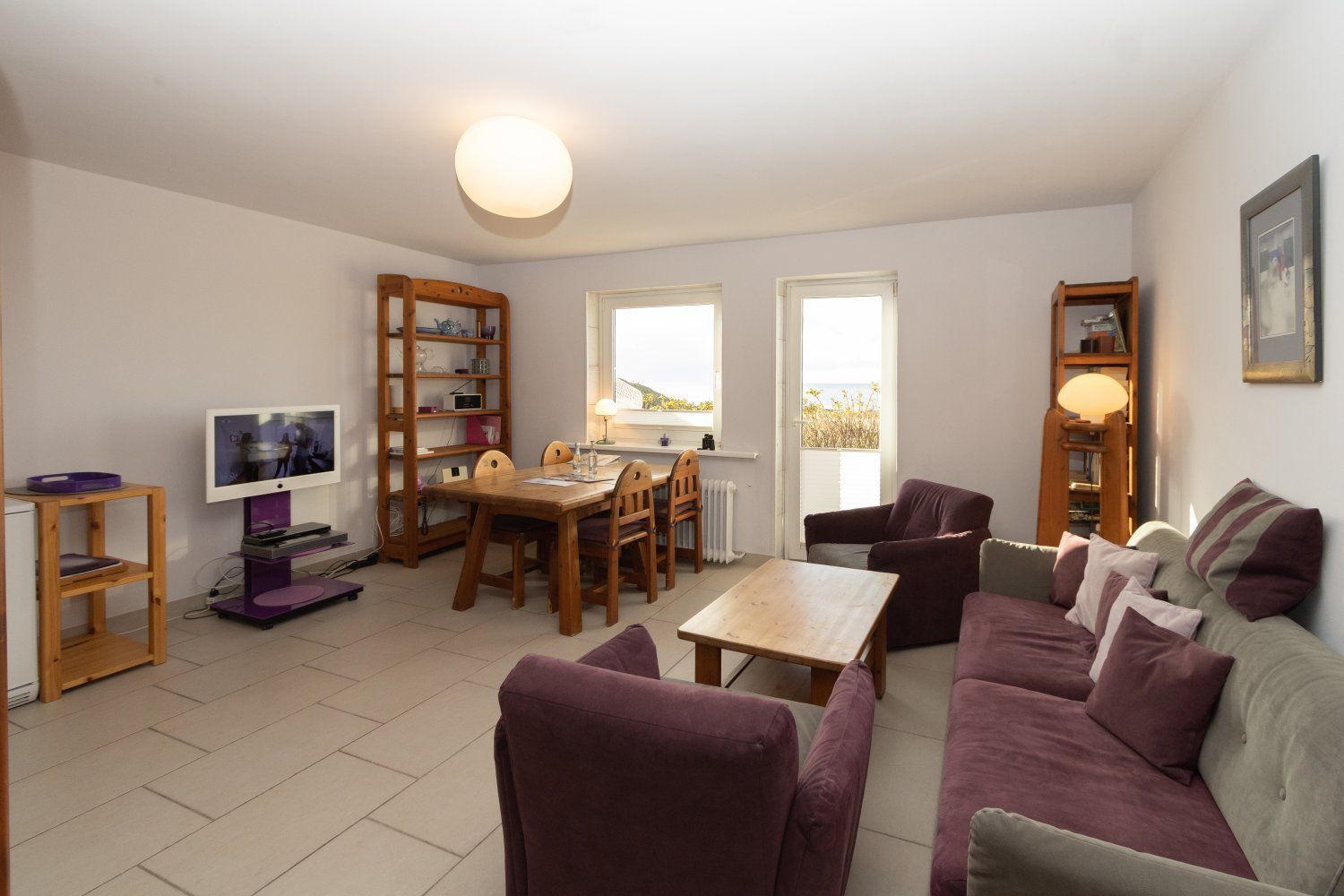 Gepflegte, helle, gemütliche 2-Zi.-Terrassenwohnung auf hoher Küstendüne mit großartigem Panorama-Nordseeblick. Nur wenige Schritte zum Brandungsstrand und zur Bushaltestelle „Hörnum-Nord“. Haus am Ende einer Sackgasse, Wohnung daher absolut ruhig bis auf das (gelegentliche) Raunen des Windes und Rauschen des Meeres.