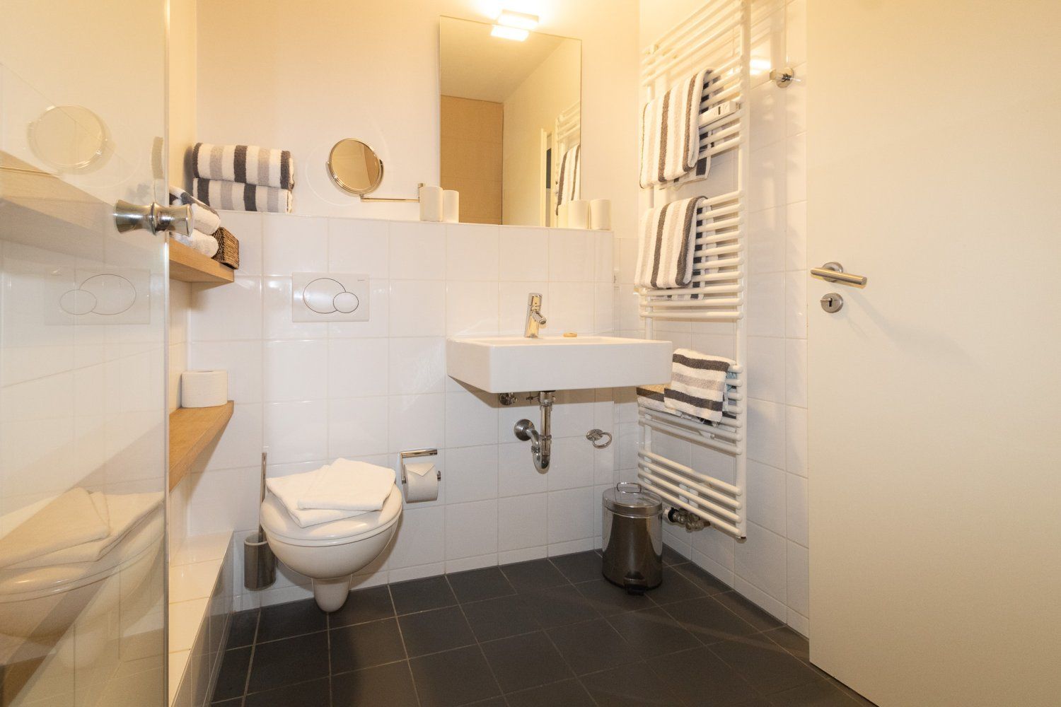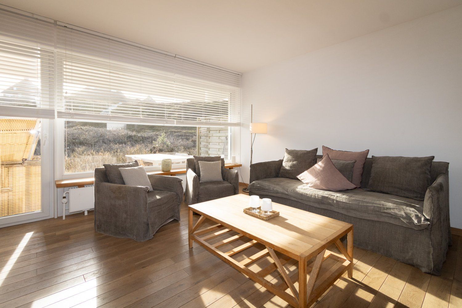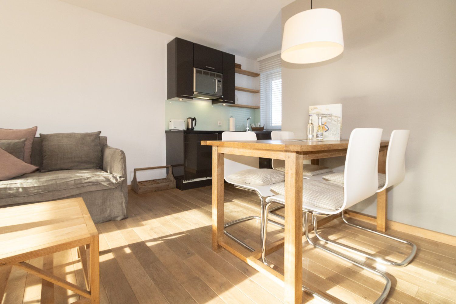 Ferienwohnung für bis zu 4 Personen (2 Erwachsene + 2 Kinder) in unmittelbarer Strandnähe zum Hauptbadestrand. Diese helle Erdgeschoßwohnung verfügt über 2 Schlafzimmer und einem großem Wohnbereich mit angrenzender Küchenzeile. Das Badezimmer ist modern und hell eingerichtet.