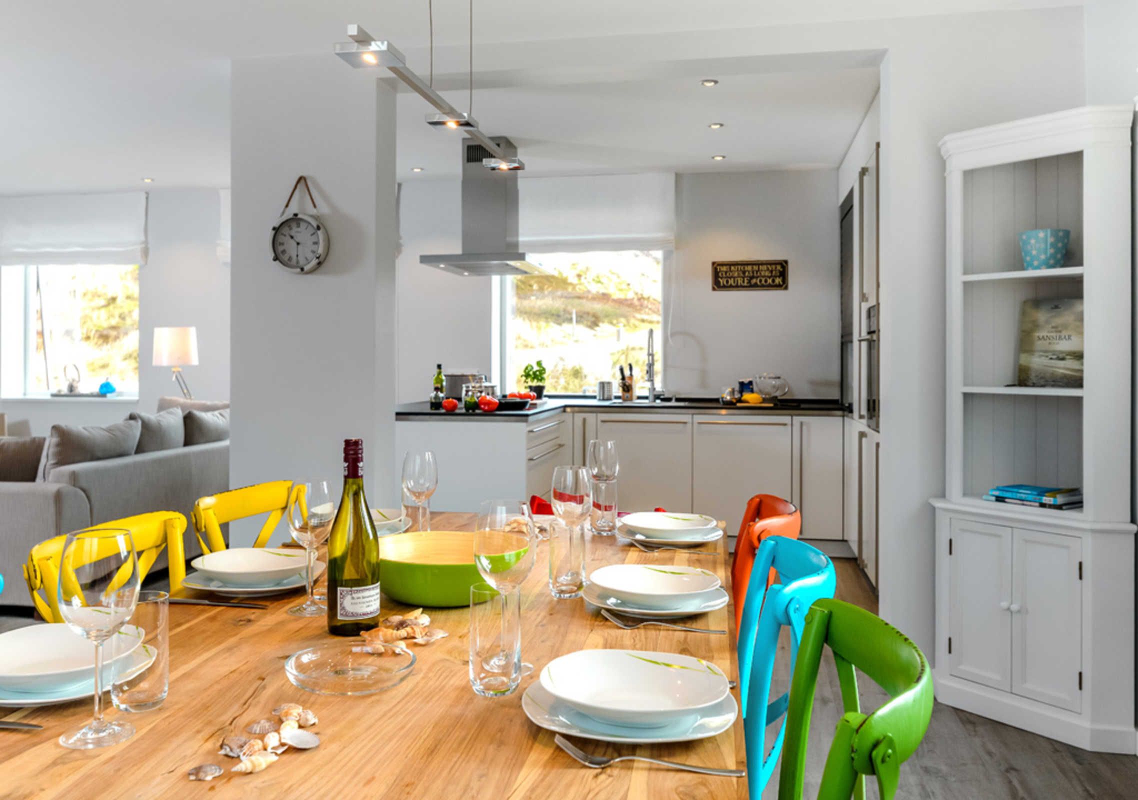 Das Sylt Hüüs verfügt über einen Eingangsbereich von dem aus Sie direkt in den großzügigen Wohn-Essbereich mit offener Küche gelangen. Ein Kaminofen lädt auch im Winter zur Gemütlichkeit ein.