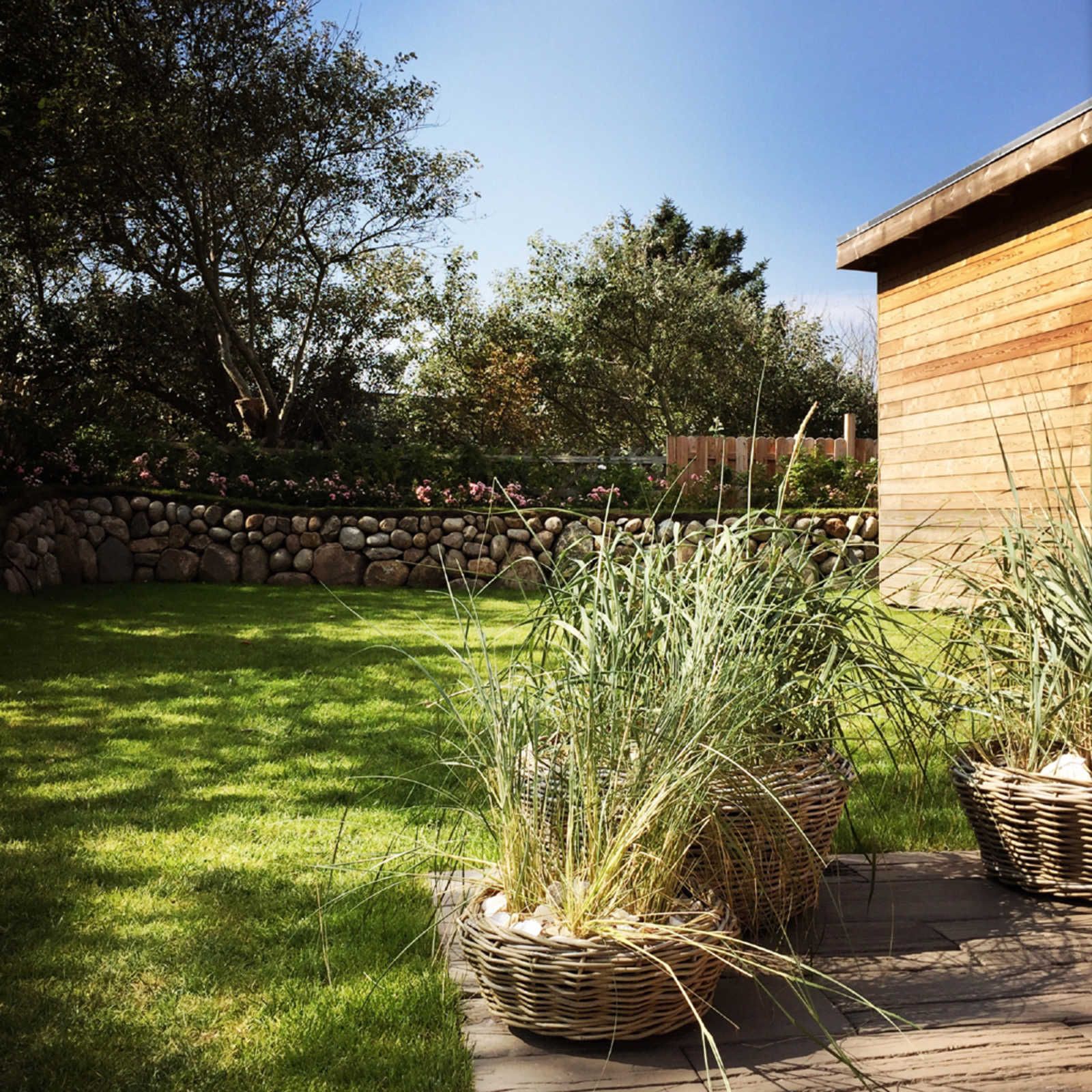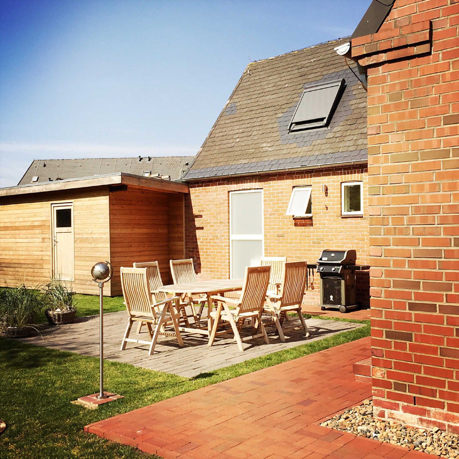 Die Terrasse mit Gartenmöbeln lädt bei schönem Wetter im Garten zum relaxen ein. Umgeben von Syltrosen, abgegrenzt durch einen Friesenwall und fern von jeder Durchgangsstraße finden Sie hier die absolute Ruhe.