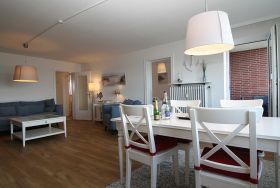 Diese wunderschöne Wohnung ist für 4 Personen ausgestattet. Sie verfügt über 2 Schlafzimmer eines mit Doppelbett und eines mit 2 Einzelbetten. Vom Wohnzimmer aus haben Sie einen fantastischen Blick auf die Ostseite, das Wattenmeer, von Hörnum. Zur Wohnung gehört ein Duschbad und eine sep. kleine Küche, die mit allem ausgestattet ist, was man im Urlaub braucht.