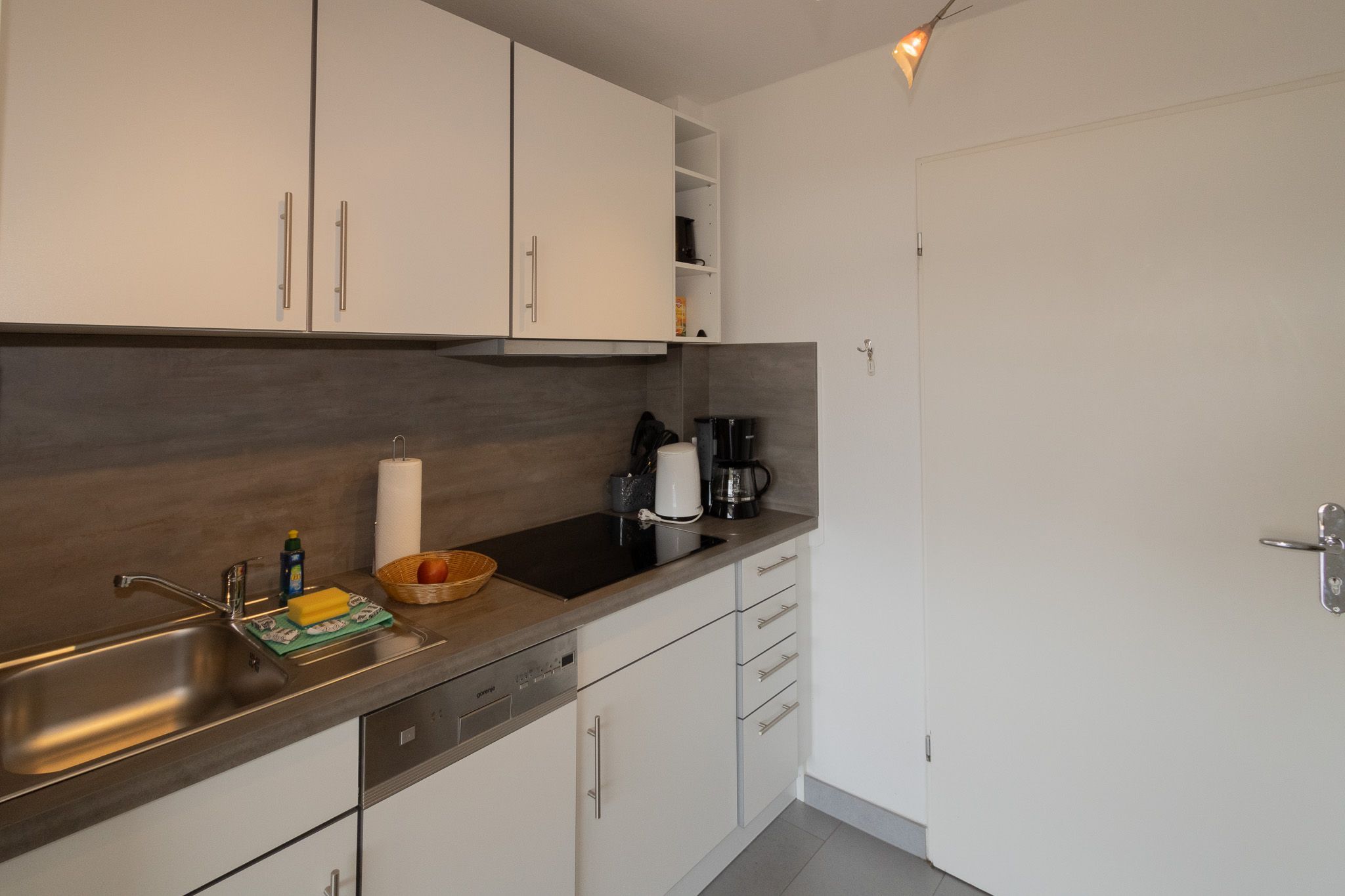 Die voll ausgestattete Küche lässt keine Wünsche offen. Egal, ob Sie Ihre eigenen Gerichte zaubern oder einfach nur ein schnelles Frühstück zubereiten wollen: Mit Herd, Kühlschrank, Spülmaschine, Mikrowelle, Kaffeemaschine, Toaster sowie sämtlichen Küchenutensilien ist für alles gesorgt. Der Essbereich mit einem praktischen Esstisch bietet den perfekten Platz für gemütliche Mahlzeiten.