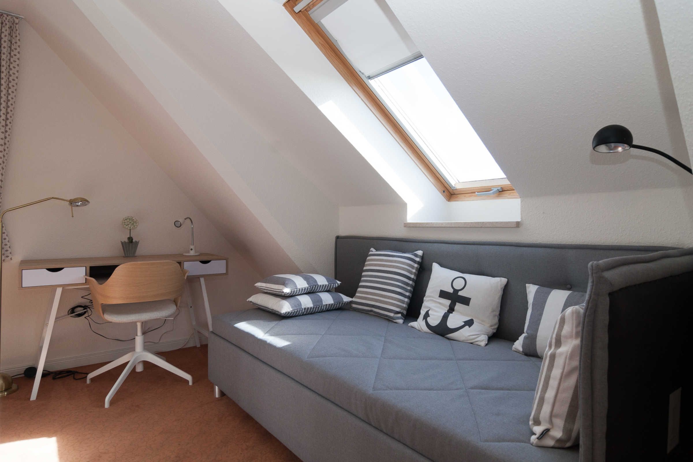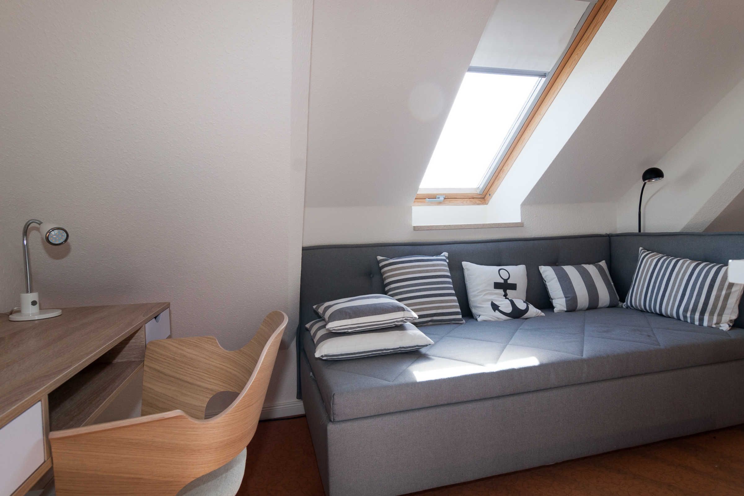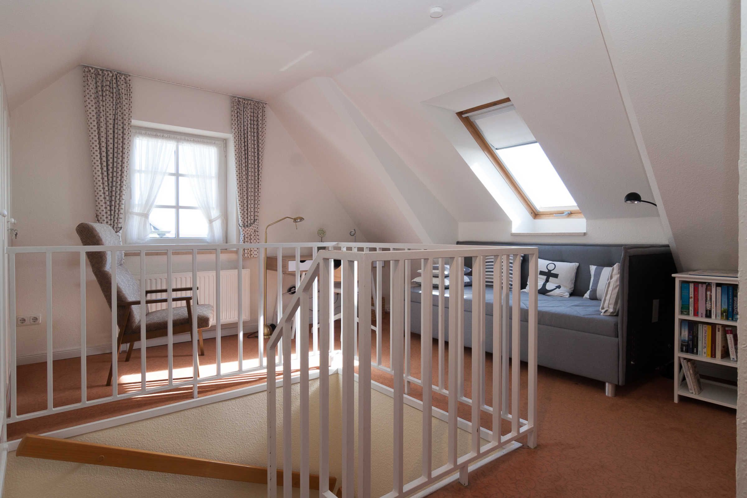 Die Wohnung ist für 2 + 2 Personen (2 Erwachsene und 2 Kinder) ausgestattet. Sie befindet sich im 1. OG und ist wie folgt ausgestattet: 1 Schlafzimmer mit Doppelbett, modernes Duschbad, Wohnzimmer mit offener Küchenzeile und Balkon zum Süden. Auf dem Balkon können Sie den ganzen Tag die Sonne und den Panoramablick geniessen. Über eine Treppe im Flur können Sie die Galerie erreichen, in der sich die Betten für die 3. und 4. Person befinden.