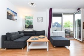 Die Ferienwohnung Strandmuschel ist für zwei bis vier Personen mit zusätzlichem Kleinkind geschmackvoll für Sie eingerichtet und modern ausgestattet, zum Beispiel ist Mikrowelle und Geschirrspülmaschine vorhanden, eine Waschmaschine und ein Wäschetrockner stehen zum Benutzen für alle Gäste zur Verfügung. Die Wohnung verfügt über einen sonnigen Balkon.