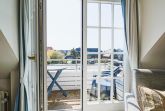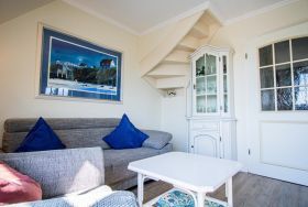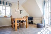 Das exclusive Obergeschoss Appartement liegt in einer Sackgasse, nur wenige Minuten bis zum Strand. Im OG der Wohn/Essbereich mit angrenzender Küchenzeile, ein neues Duschbad/WC und ein Doppelschlafzimmer. Ein weiterer Schlafzimmer mit 2 Einzelbetten ist im Dachgeschoss. Das Appartement hat Kabel-TV, Mini Anlage bzw. Radio,W-Lan, Geschirrspüler,einen Balkon zum Süden mit Gartenmöbeln, sowie eigene Sonnenkule mit Strandkorb,geschützt gelegen hinter dem Haus.