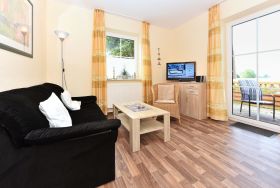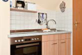 Größe ca. 29 Quadratmeter, Wohnraum mit räumlich abgeteilter Küche, Schlafzimmer, Badezimmer mit Dusche, Waschtisch und WC, Erdgeschoss, Terrasse, optimal für 1 bis 2 Personen.