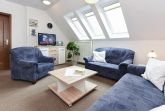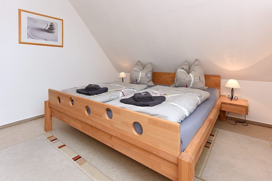 Größe ca. 64 Quadratmeter, Wohnzimmer, Küche, Schlafzimmer, zweites separates Schlafzimmer, Badezimmer mit Dusche, Waschtisch und WC, Obergeschoss, optimal für 2 bis 4 Personen und zusätzlich ein Kleinkind.