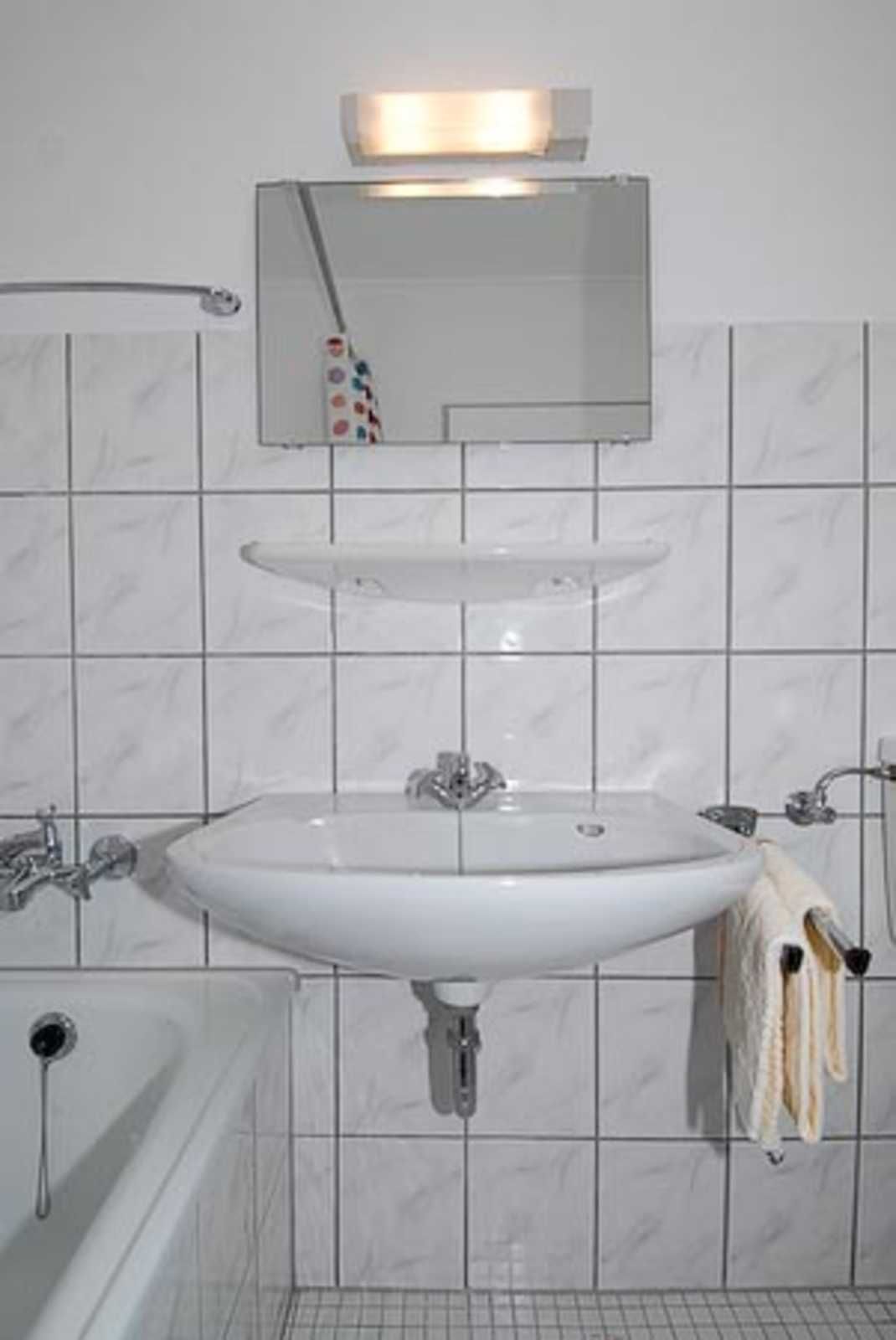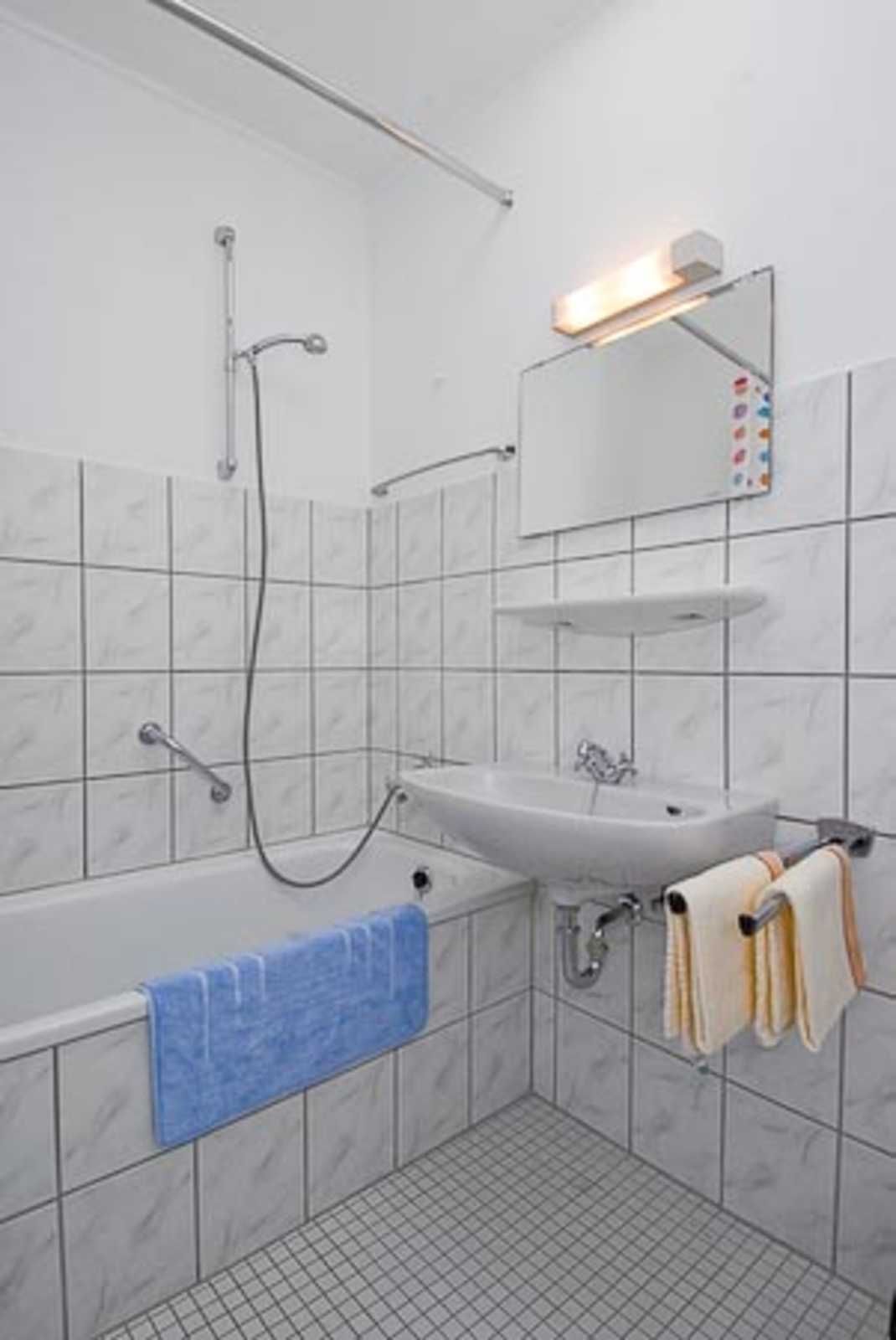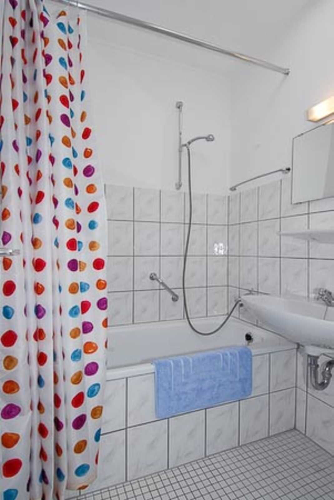 Badezimmer mit Badewanne (mit Dusche), Waschtisch und WC
