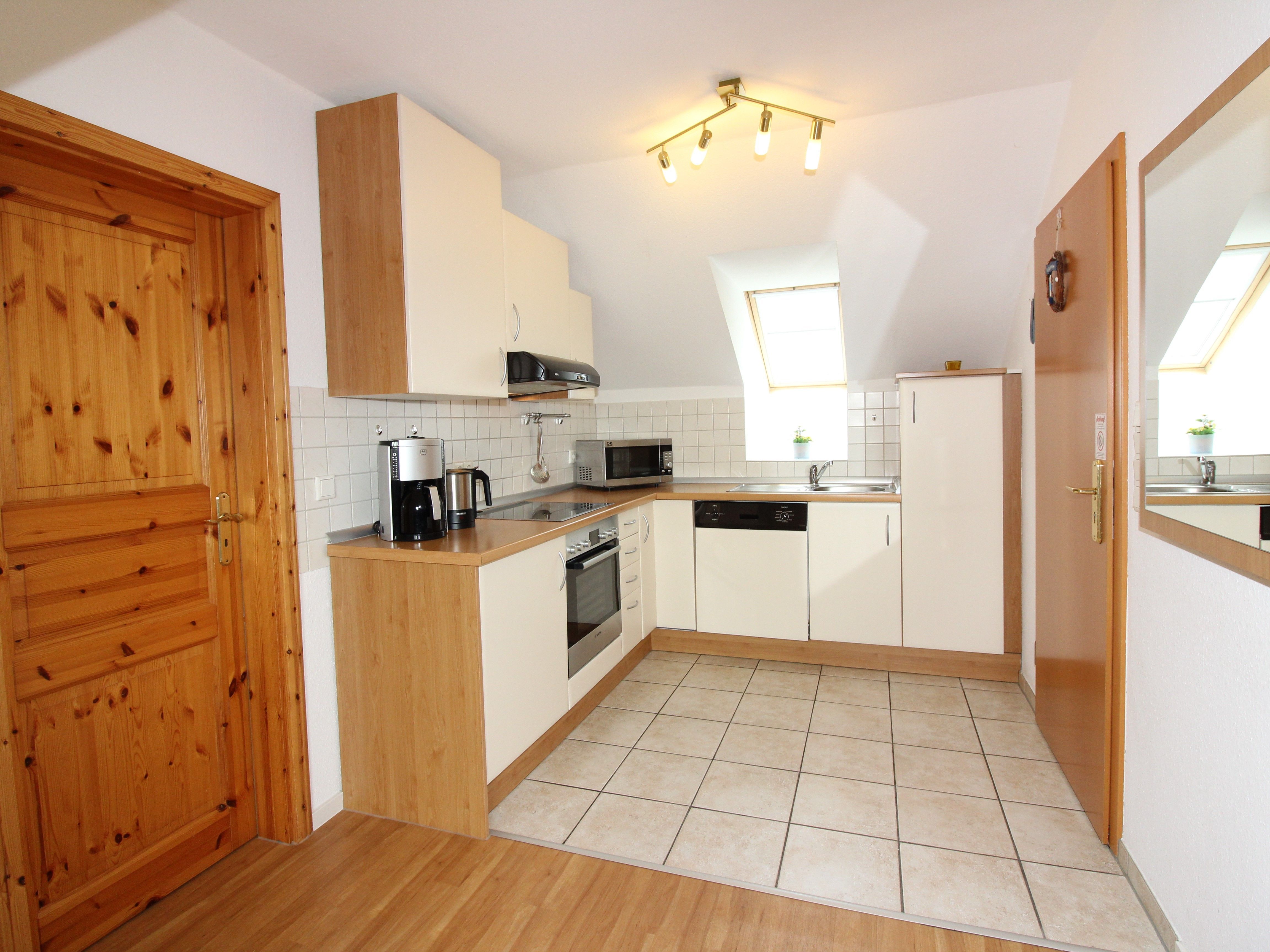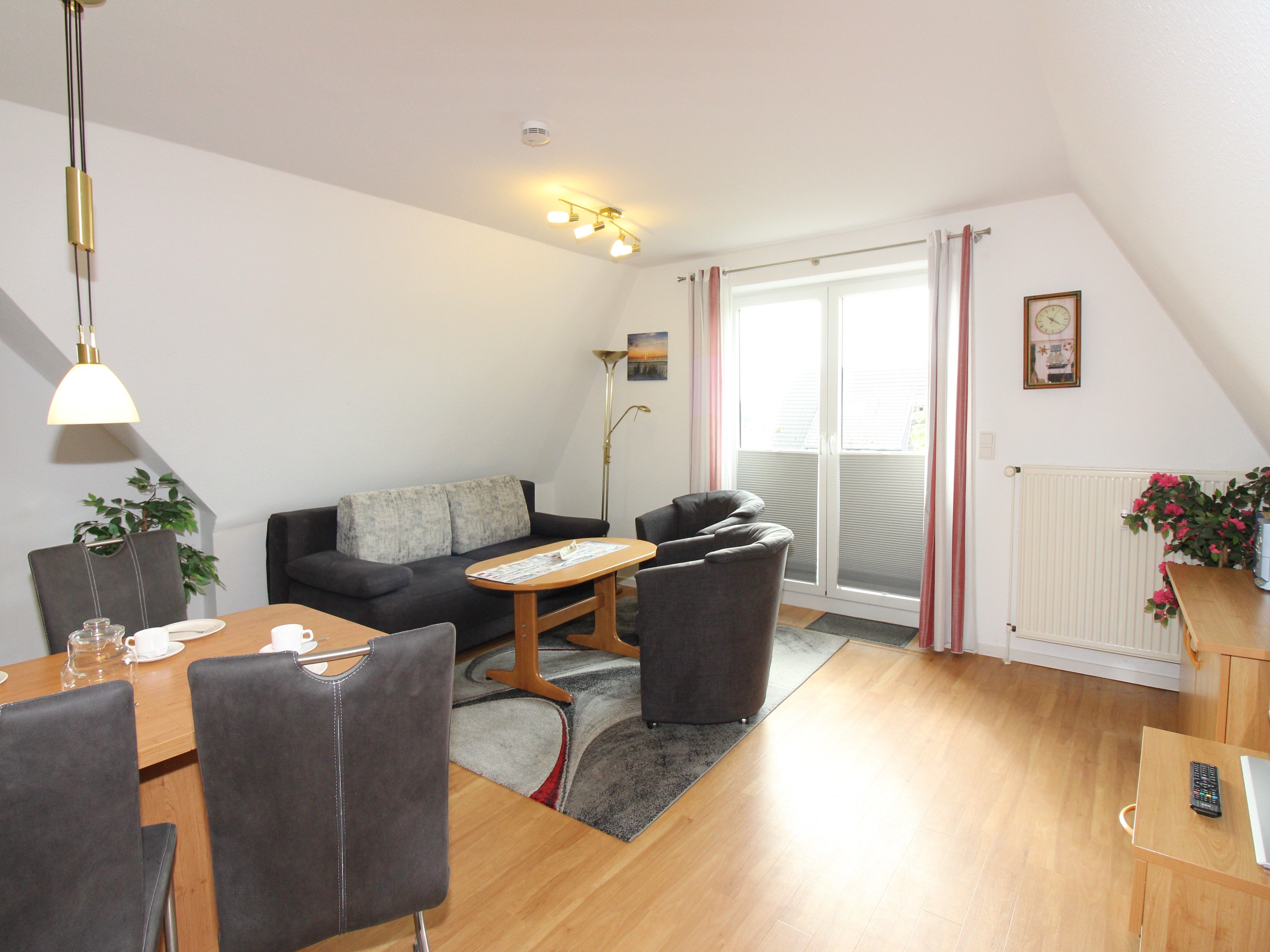 Sie wohnen in einem 3-Zimmer-Appartement für bis zu 6 Personen auf 52 m² im Dachgeschoss über einer Bar. Zwei Schlafzimmer mit Doppelbett, Wohn-/Schlafraum mit bequemer Doppelbettcouch, separater Essplatz, voll ausgestatteter Küchenbereich mit Geschirrspüler und Mikrowelle, Dusche/WC, Balkon, Kabel-TV, Internetzugang, inklusive einem Kinderreisebett und einem Kinderhochstuhl. KFZ-Stellplatz hinter dem Haus.