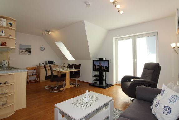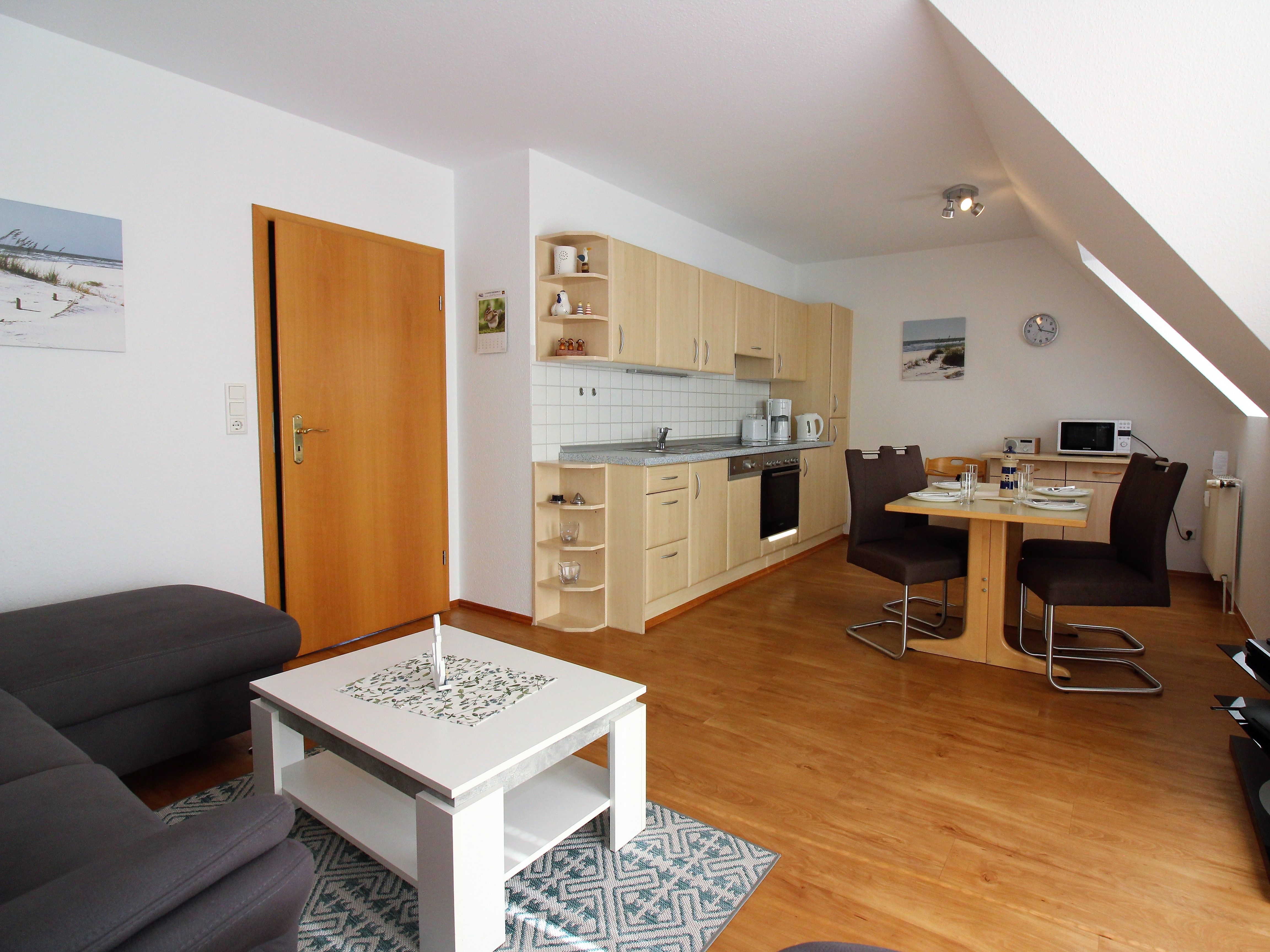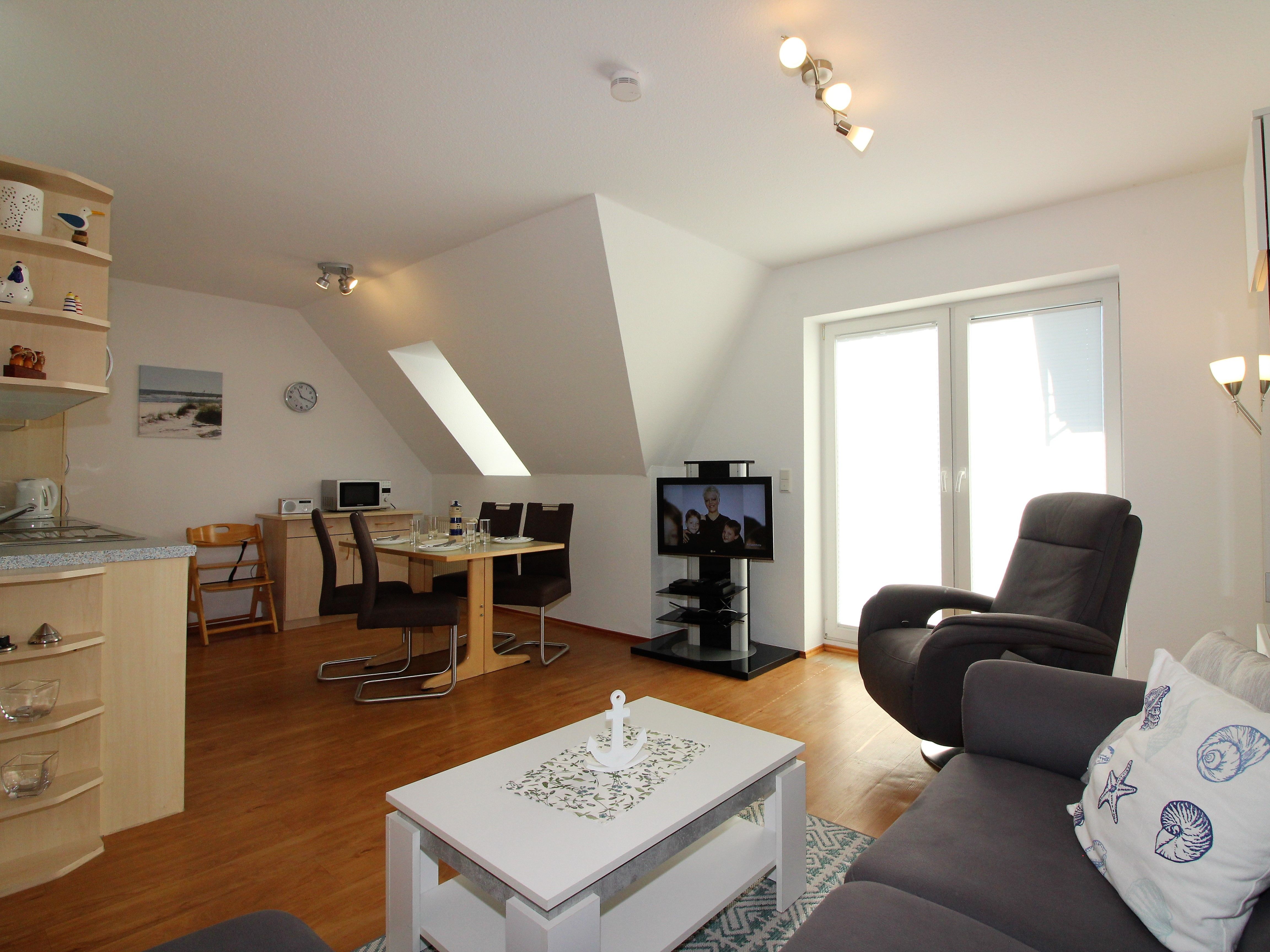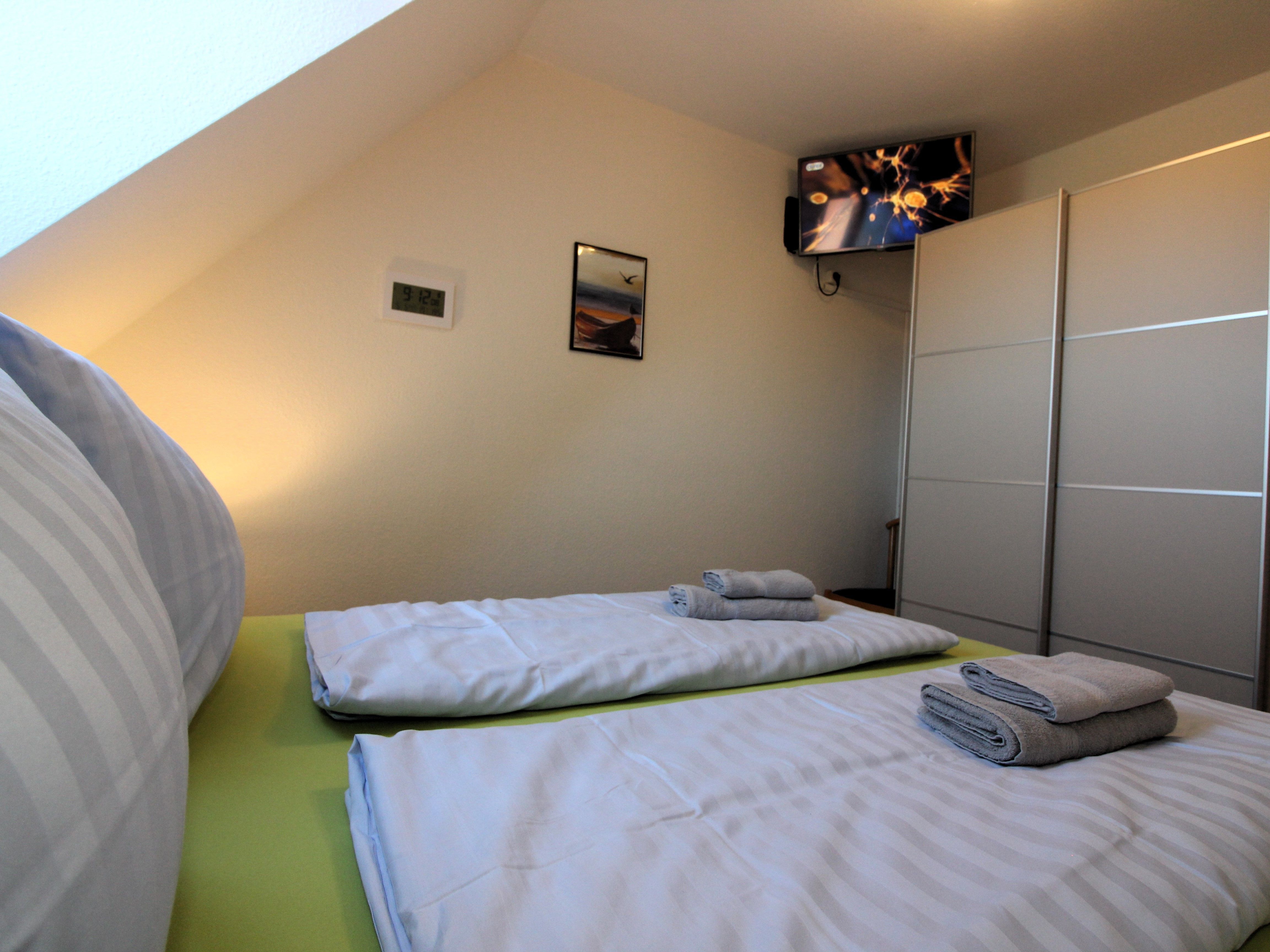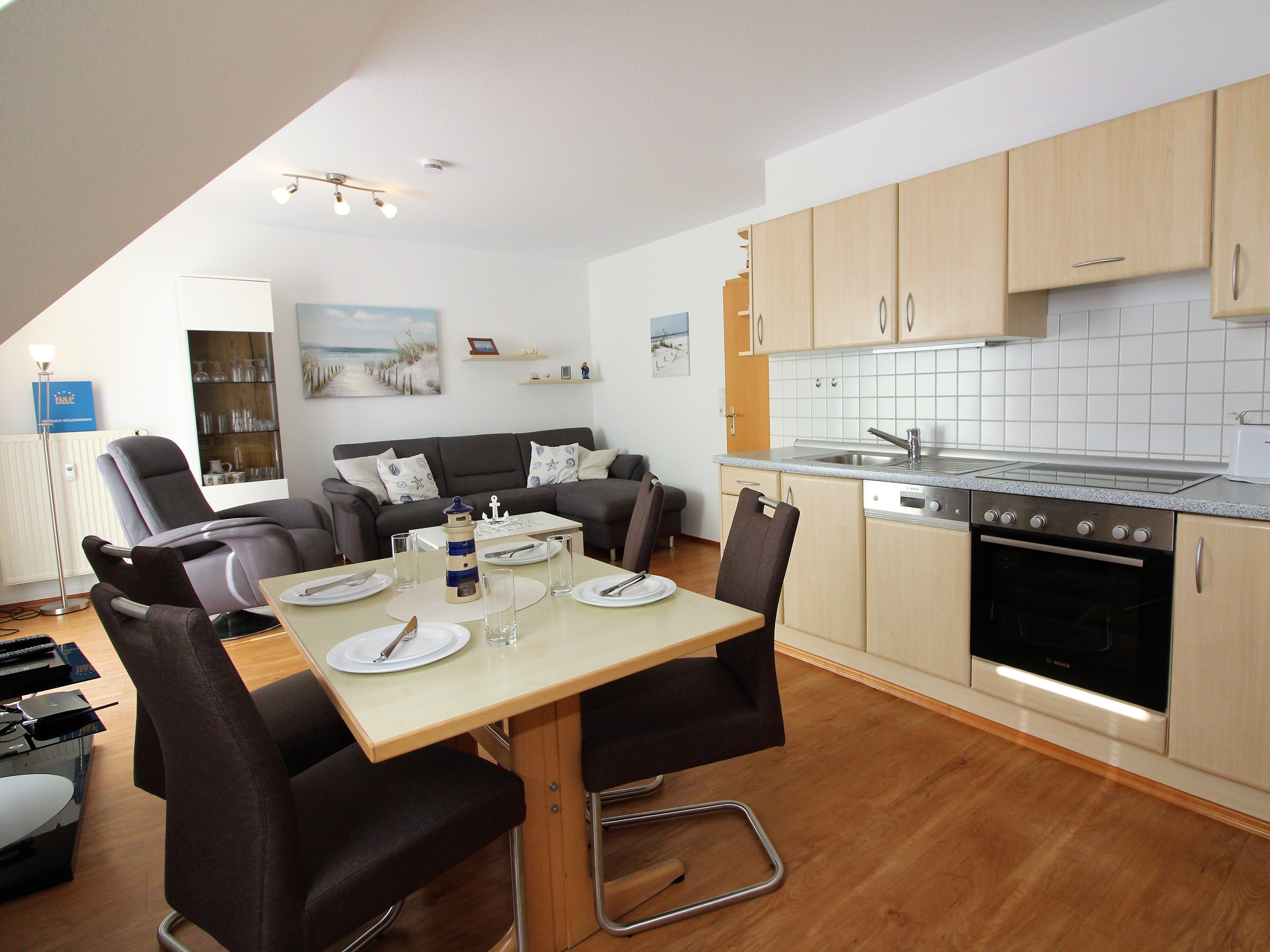 Sie wohnen in einem 3-Zimmer-Appartement für bis zu 6 Personen auf ca. 49 m² im 1. OG. Ein Schlafzimmer mit Doppelbett und LCD Flachbild-TV, ein Schlafzimmer mit Etagenbett und CD-Radio, Wohnraum, separater Essplatz, voll ausgestatteter Küchenbereich mit Geschirrspüler und Mikrowelle, Dusche/WC mit Föhn, Balkon, Kabel-TV. Inklusive einem Kinderreisebett und einem Kinderhochstuhl.