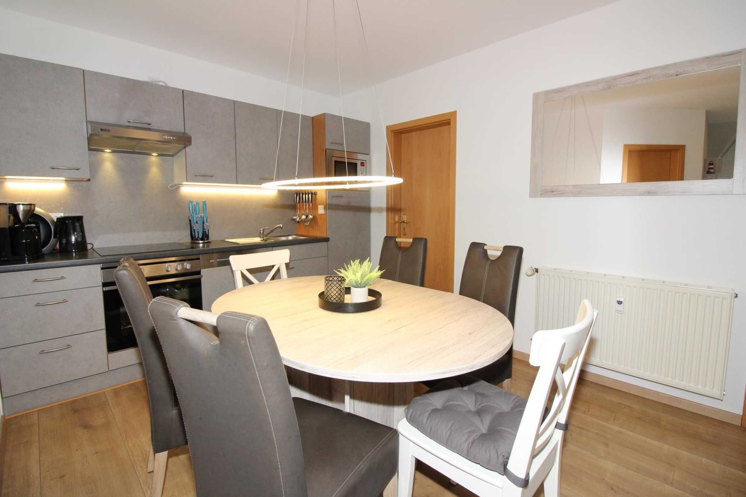 Die Küche ist für vier Personen umfangreich ausgestattet. Herd mit Ceranfeld, Backofen, Mikrowelle und Geschirrspüler sind selbstverständlich vorhanden. Mit Dolce Gusto Kapselmaschine, Wasserkocher, Toaster und Kaffeemaschine bleiben kaum Wünsche offen.