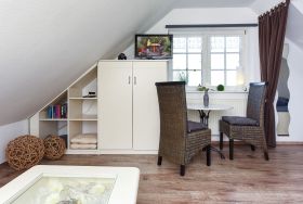 Hier im „Haus Friesische Weite“ warten zwei schöne, gemütlich gstaltete sowie freundlich-modern eingerichtete und voll ausgestattete Ferienwohnungen auf unsere Gäste und ihre Kinder. Die Wohnungen sind ungefähr 60 und 30 Quadratmeter groß und befinden sich im Obergeschoss; sie bieten viel Platz für 2 bis 4 Personen nebst zusätzlichem Kleinkind oder für 1 bis 2 Personen.Im schönen sonnigen Garten an unserem kinderfreundlichen „Haus Friesische Weite“ genießen Sie die unglaubliche Ruhe und die herrlich frische ostfriesische Luft.