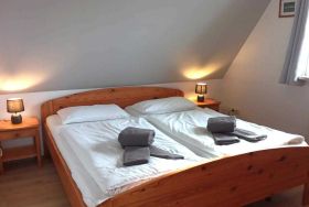 Raumaufteilung: 1 Schlafraum (1 Doppelbett), 1 Wohnraum, 1 Küchenzeile, 1 Badezimmer mit Dusche, 1 Schlafraum (Kinder) (2 Einzelbetten).