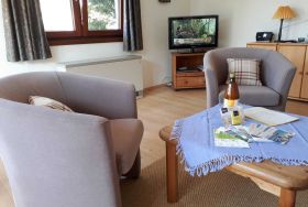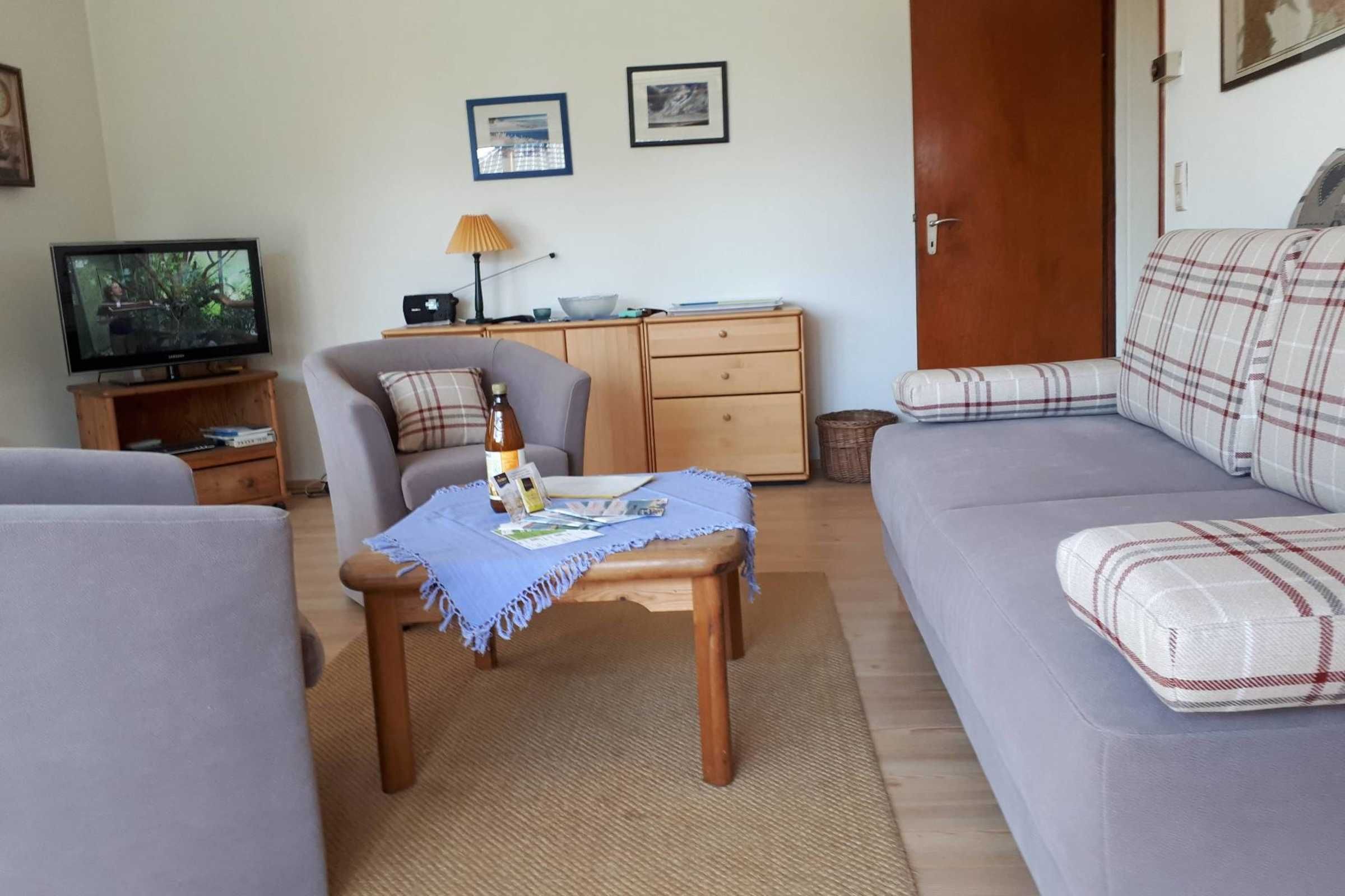 Ein bis zwei weitere Schlafgelegenheiten bietet eine Schlafcouch im Wohnzimmer.