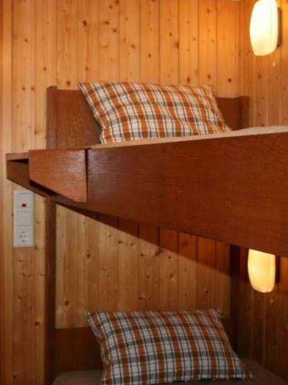 Raumaufteilung: 1 Schlafraum (1 Doppelbett), 1 Wohnraum, 1 Diele/Vorraum, 1 Wohnküche, 1 Badezimmer mit Dusche, 1 Schlafraum (Kinder) (1 Etagenbett).