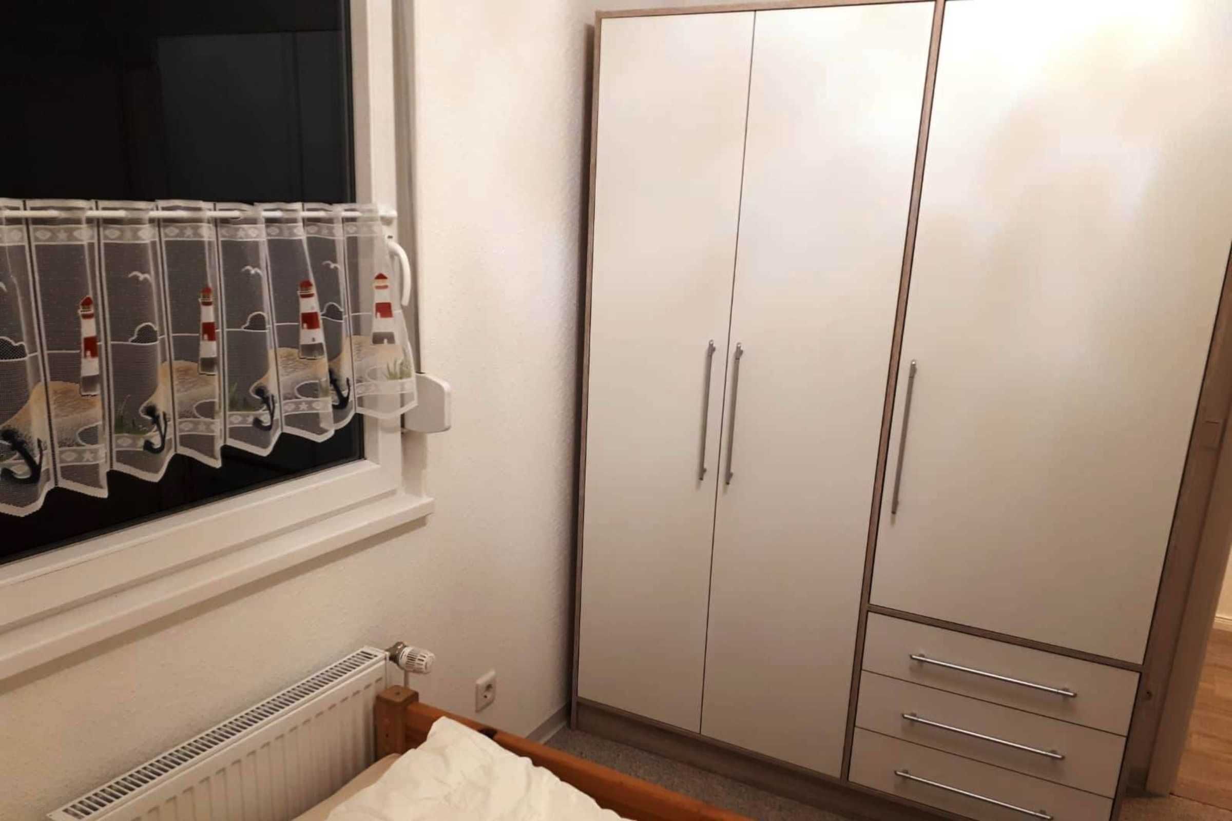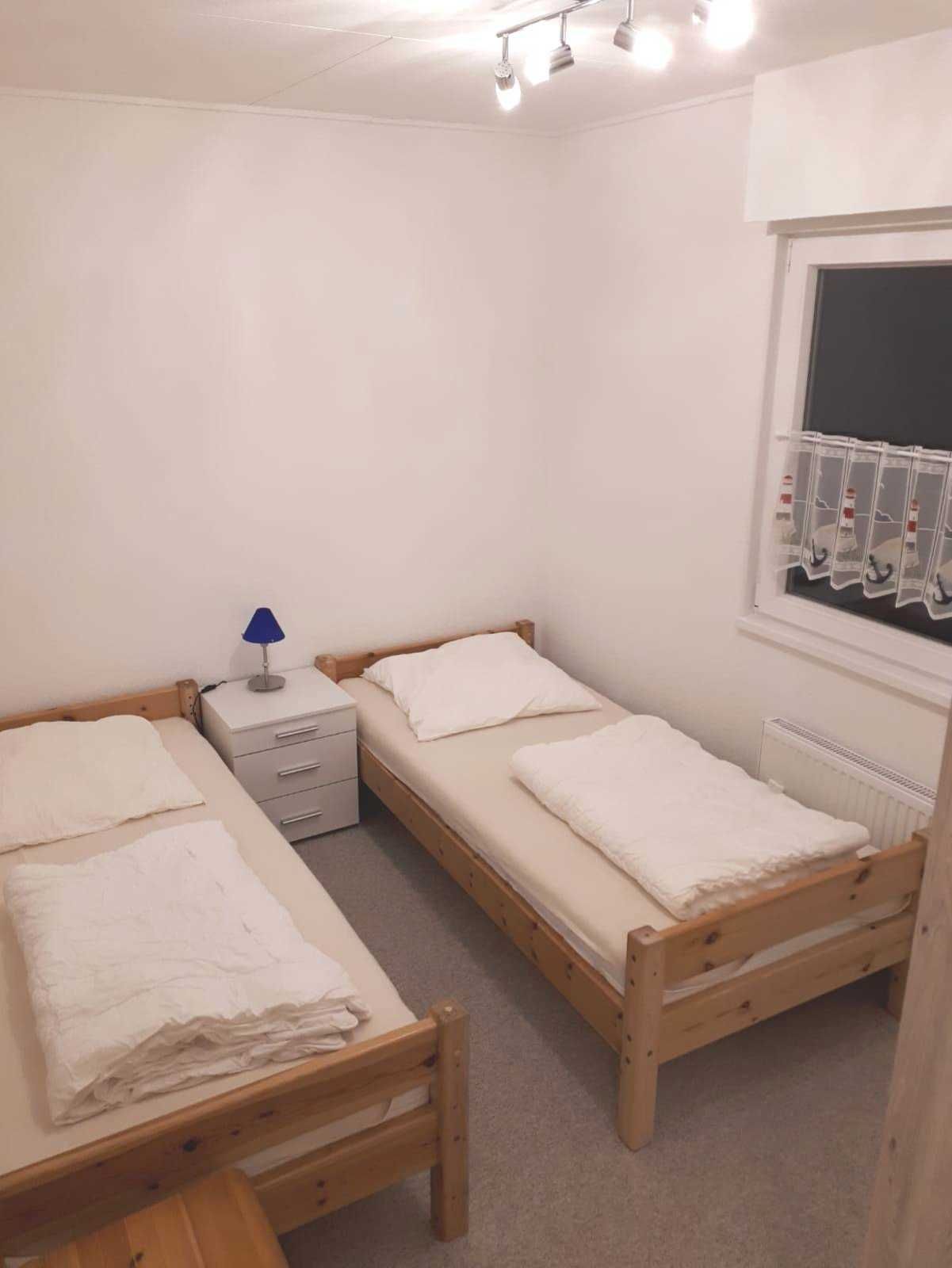 Raumaufteilung: 1 Schlafraum (2 Einzelbetten), 1 Schlafraum (1 Doppelbett), 1 Wohnraum, 1 Flur, 1 separate Küche, 1 Badezimmer mit Dusche.
