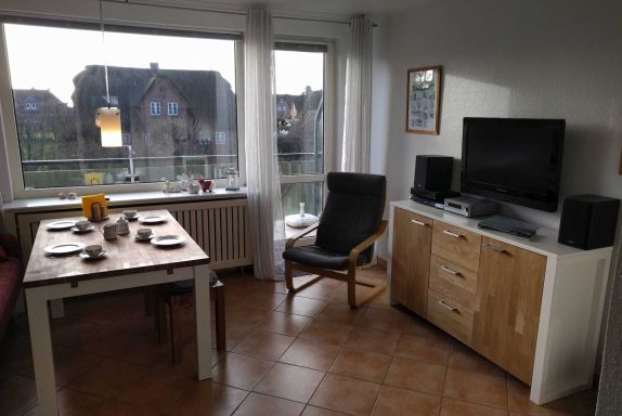 Die 65 qm große, helle und schön eingerichtete Obergeschosswohnung mit Südbalkon bietet Ruhe und Erholung für vier Personen.Die Wohnung bietet ein helles Wohnzimmer, ein geräumiges Duschbad, eine Küche mit Geschirrspüler,1 Schlafzimmer mit direktem Durchgang zum Wohnzimmer, 1 Schlafzimmer mit zwei Einzelbetten).Zum Komfort der Wohnung gehören großer Sat-LCD-TV, CD/DVD-Player, Münzwaschmaschine - und Trockner und ein PKW-Stellplatz direkt am Haus. Von Ostern bis zu den Herbstferien gibt es gleich in der Nähe einen Bäckerwagen mit frischen Brötchen und Kleinigkeiten fürs Frühstück täglich von 7.30-10.30 Uhr). Das nächste Lebensmittelgeschaeft befindet sich in Nieblum. Ein wirklich schönen Urlaubsdomizil in dem Sie sich wohlfühlen werden!
