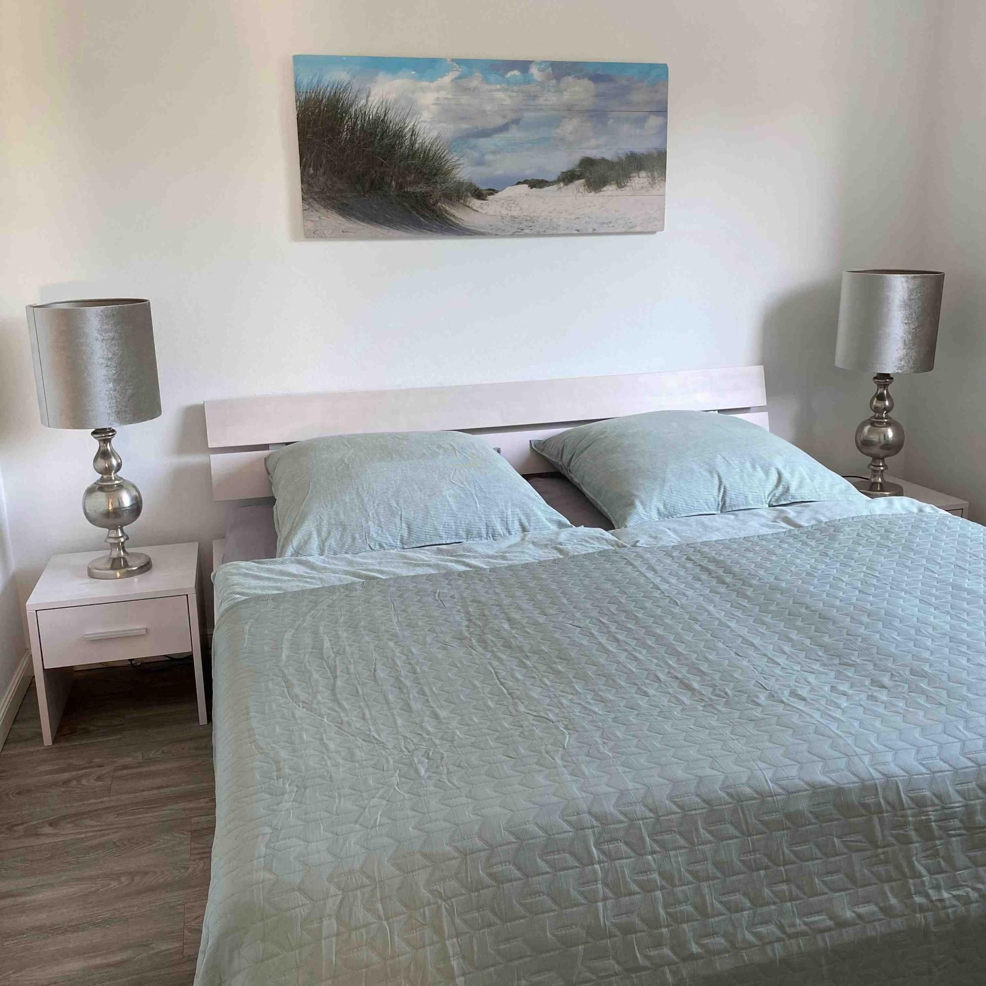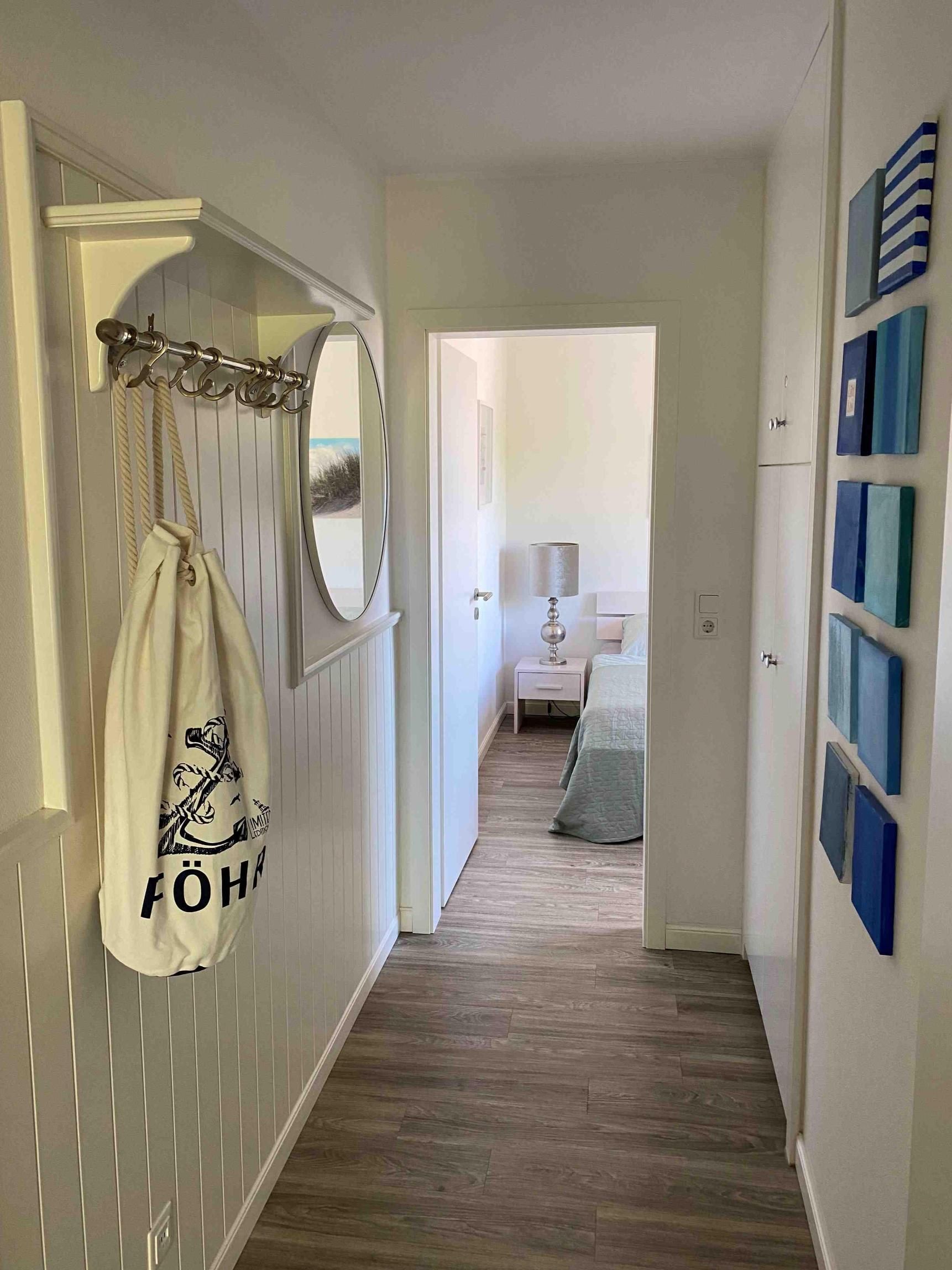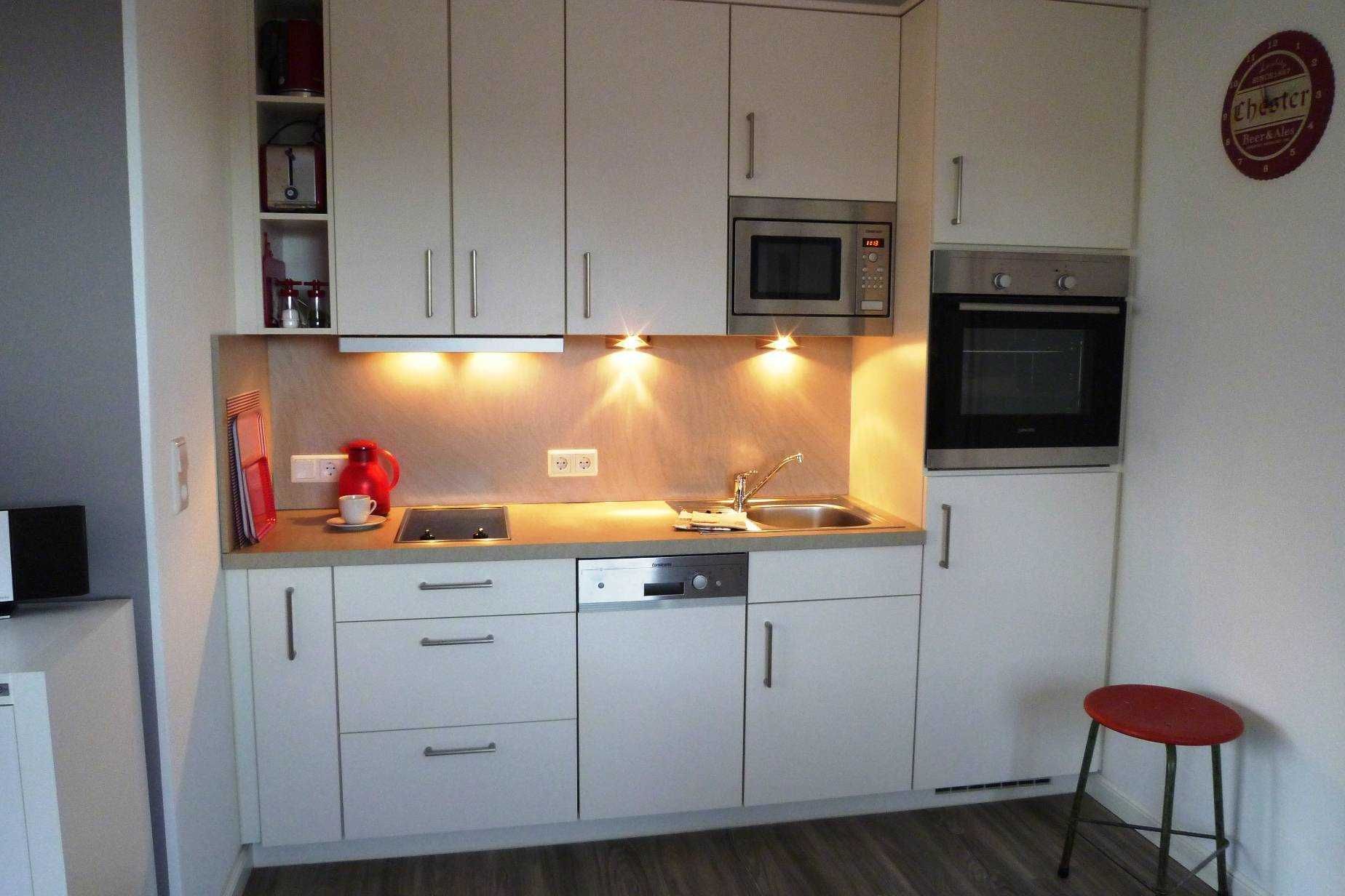 Die Wohnung Luett Lee im Huus in Lee am Sandwall 60 liegt nur 50 m vom Hauptstrand entfernt in zweiter Reihe und sehr zentral gelegen, am ruhigen Ende des lebhaften Ortszentrums und der Flaniermeile Sandwall. Vom Fähranleger sind es nur 750 m (10 Minuten zu Fuß oder ganz bequem per Taxi, mit Gepäckservice auf Anfrage). Die 43 m² große, lichtdurchflutete Wohnung Luett Lee liegt im 3. OG des Hauses (Endetage) und lädt Sie/Euch auf dem großen Ost-Balkon zum sonnigen Frühstück ein. Der großzügige Wohnbereich mit einem kuscheligen Lounge-Sofa, der bequeme Essbereich und die komplett ausgestattete Küchenzeile mit Nespresso Kaffeemaschine ermöglichen Wohlbefinden zu allen Jahreszeiten. Das separate Schlafzimmer mit Doppelbett verfügt über einen (kleinen) begehbaren Kleiderschrank. In dem modernen Duschbad sorgt ein großes Fenster für viel Tageslicht und die elektrische Handtuchheizung bei Bedarf für wohlige Wärme. Smart-TV (32, Full HD, Netflix, Amazon Prime), eine HiFi-Music-Station (Streaming, DAB+, UKW, CD, USB) und ein sehr schnelles WLAN (100 MBit/s) bieten allerbestes Entertainment mit der Option auf entspanntes mobiles Arbeiten im Urlaub.
