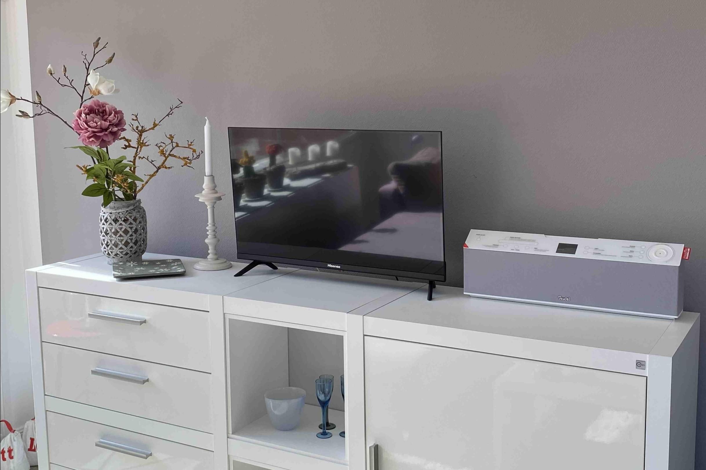 Smart-TV (32, Full HD, Netflix, Amazon Prime), eine HiFi-Music-Station (Streaming, DAB+, UKW, CD, USB) und ein sehr schnelles WLAN (100 MBit/s) bieten allerbestes Entertainment mit der Option auf entspanntes mobiles Arbeiten im Urlaub.