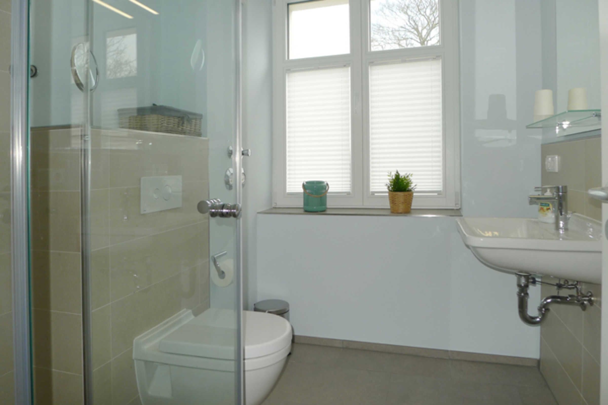 Raumaufteilung: 1 Schlafraum (1 Doppelbett), 1 Schlafraum (1 Doppelbett), 1 Schlafraum (1 Doppelbett), 1 Wohnraum, 1 Diele/Vorraum, 1 Flur, 1 Wohnküche, 1 Badezimmer mit Dusche, 1 Badezimmer mit Badewanne.