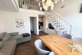 Die komfortable Galeriewohnung bietet Ihnen Wohnkomfort zum Verlieben. Auf zwei Ebenen ( 1. Obergeschoß und Dachgeschoß ) steht Ihnen Platz für 2 Erwachsene und 1 Kind (auf dem Ausziehsofa) zur Verfügung. Die Wohnung wurde umfassend und komplett modernisiert ( inklusive neuem Badezimmer und chicer Einbauküche mit allen
