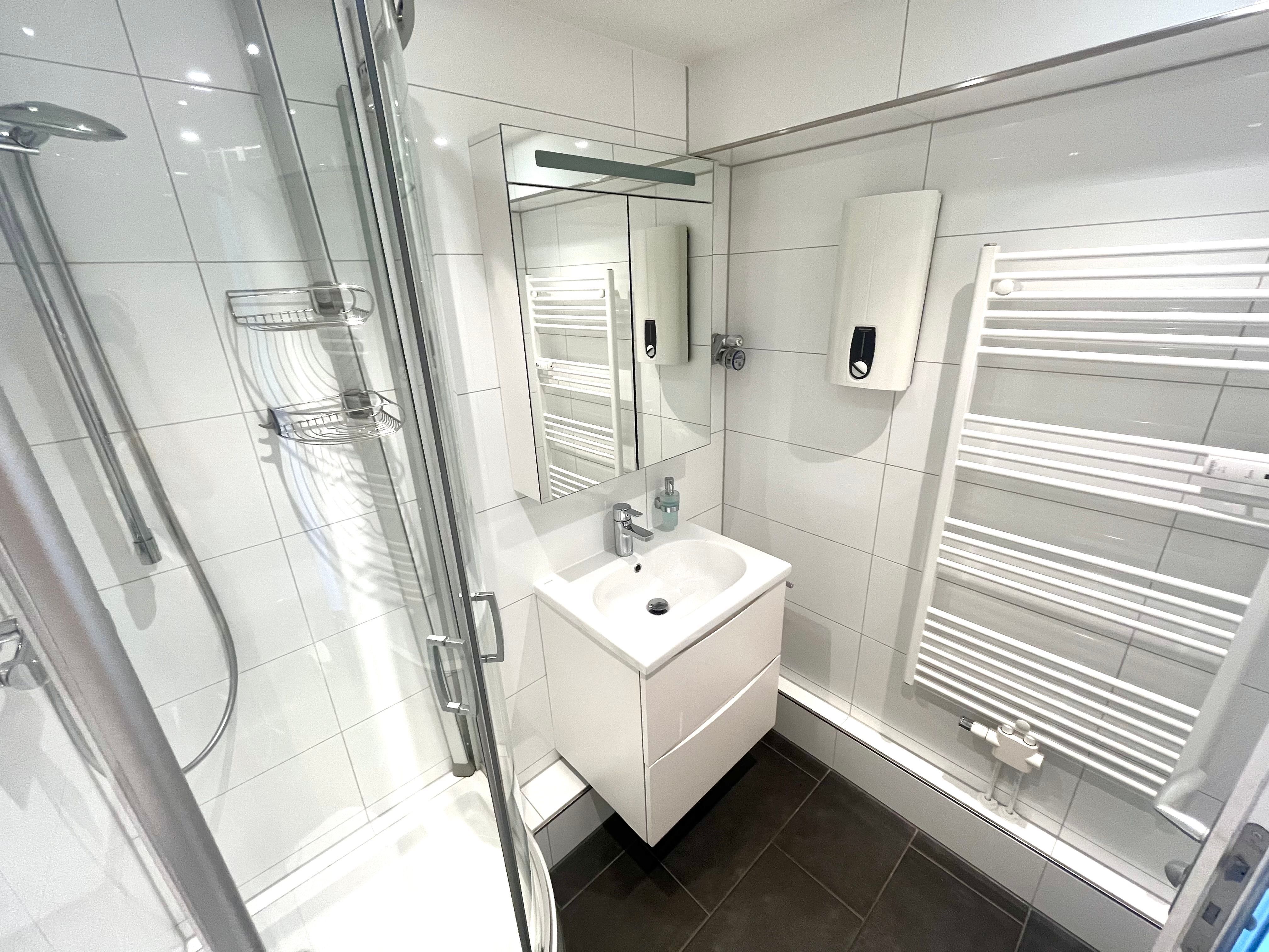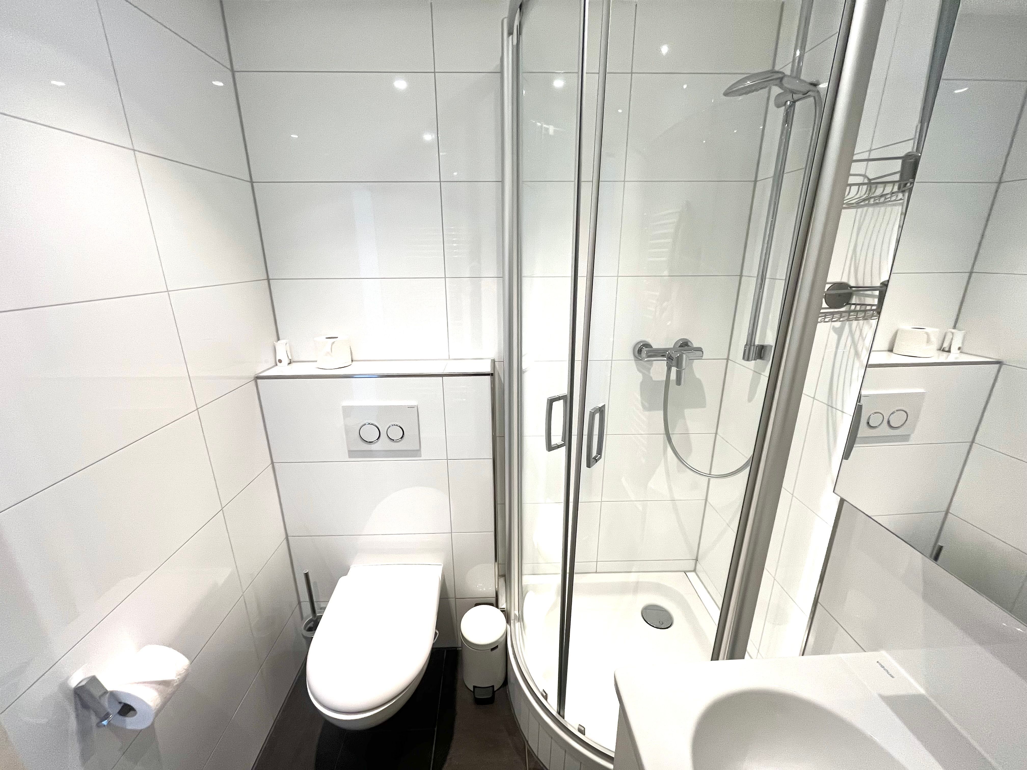 Extras ) und bietet eine moderne, hochwertige Ausstattung. Die angenehme Deckenhöhe, die großen Fensterflächen mit blickdichten, weißen Plissees und der wunderschöne Blick auf die alte Westerländer Dorfkirche werden Sie begeistern!