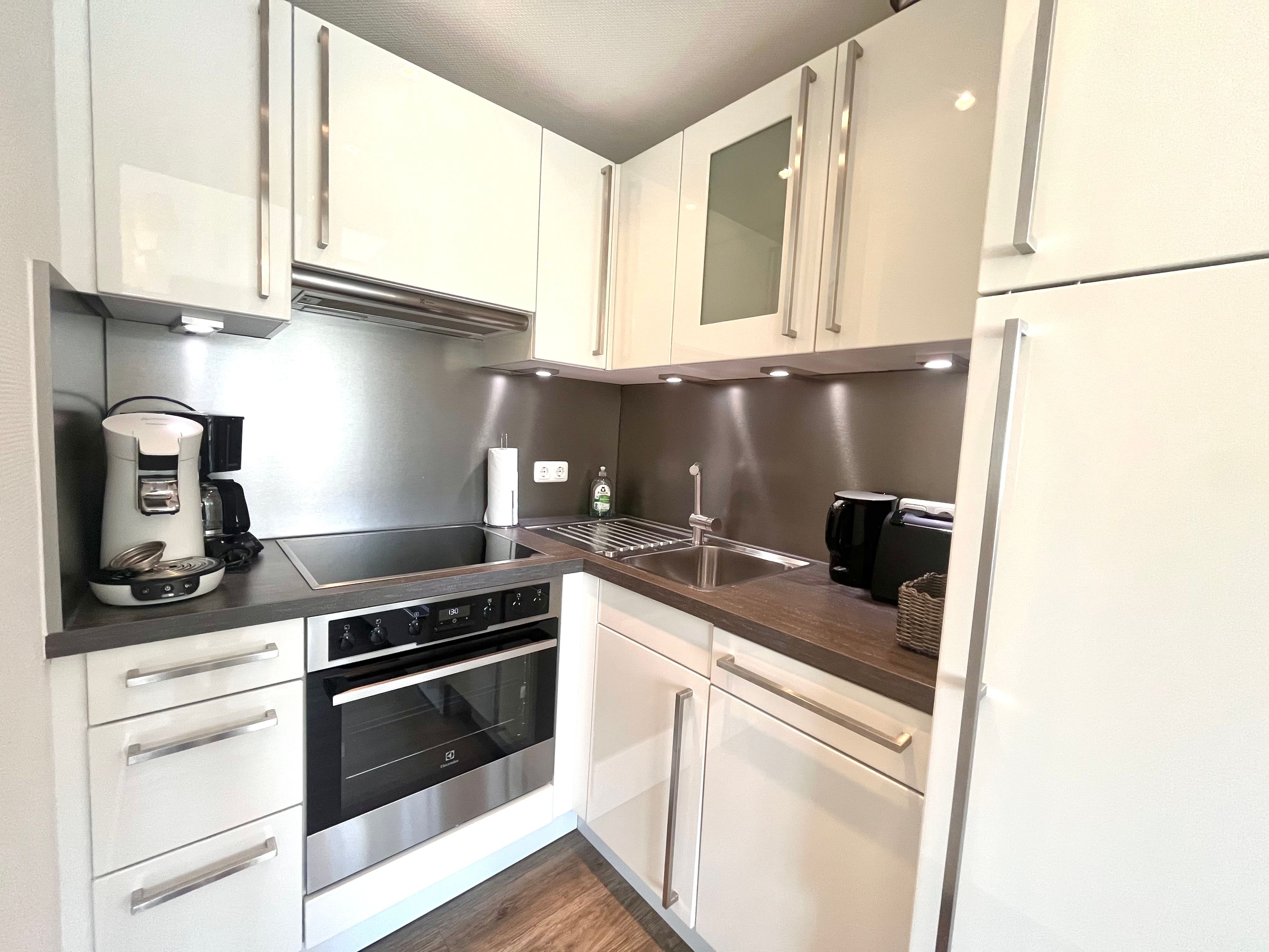 Die Küche ist sehr gut ausgestattet und verfügt unter anderem über eine Kaffee-PAD Maschine, eine Filterkaffeemaschine, einen Toaster und einen Wasserkocher.