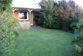 Der kleine angelegte Garten ist komplett eingewachsen und verfügt über eine überdachte Terrasse mit Gartenbestuhlung mit herrlicher unverbaubarer Fernsicht.