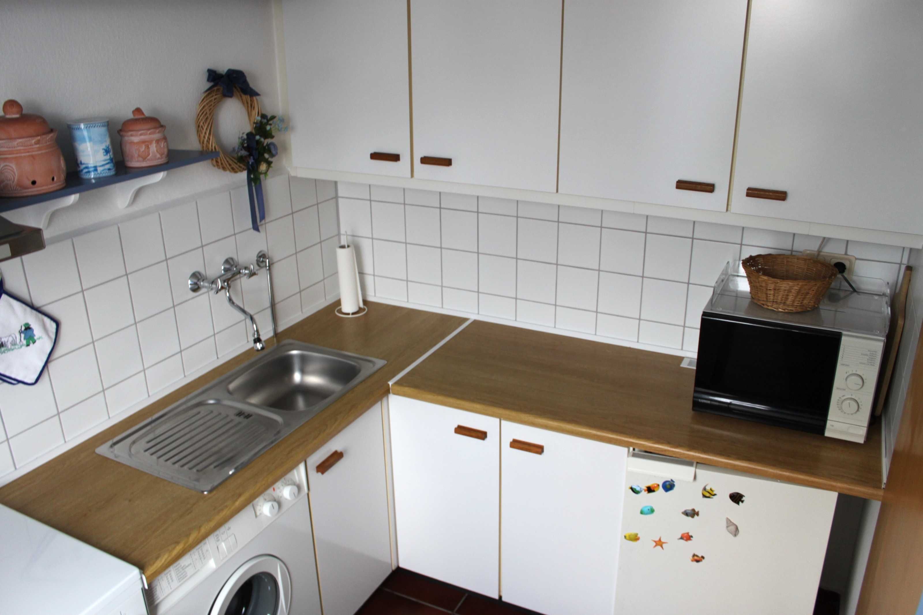 Separate Küche mit 4Plattenherd mit Backofen, Waschmaschine und mit allen erforderlichen Elektrogeräten, Töpfe. Gedecke und Bestecke..