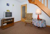 Größe ca. 65 Quadratmeter, Wohnraum mit integrierter Küche, Schlafzimmer, zweites separates Schlafzimmer/Kinderzimmer, Badezimmer mit Dusche, Waschtisch und WC, Obergeschoss, Parkplatz (reserviert), optimal für 2 bis 5 Personen.