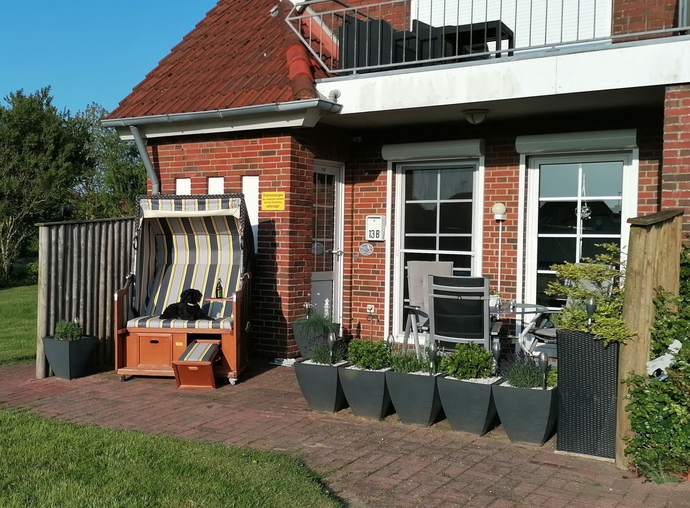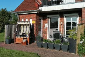 Helle, liebevoll eingerichtete Ferienwohnung im Erdgeschoß einer kleinen, ruhigen Wohnanlage für bis zu vier Personen in Friedrichskoog Spitze, Dithmarschen, Schleswig-Holstein, mit Deichblick und Abendsonne. Hunde sind herzlich willkommen. Ein PKW-Stellplatz ist am Haus vorhanden. Fahrräder, Kinderwagen etc. finden Platz in der Garage, die zum Teil mitgemietet wird.