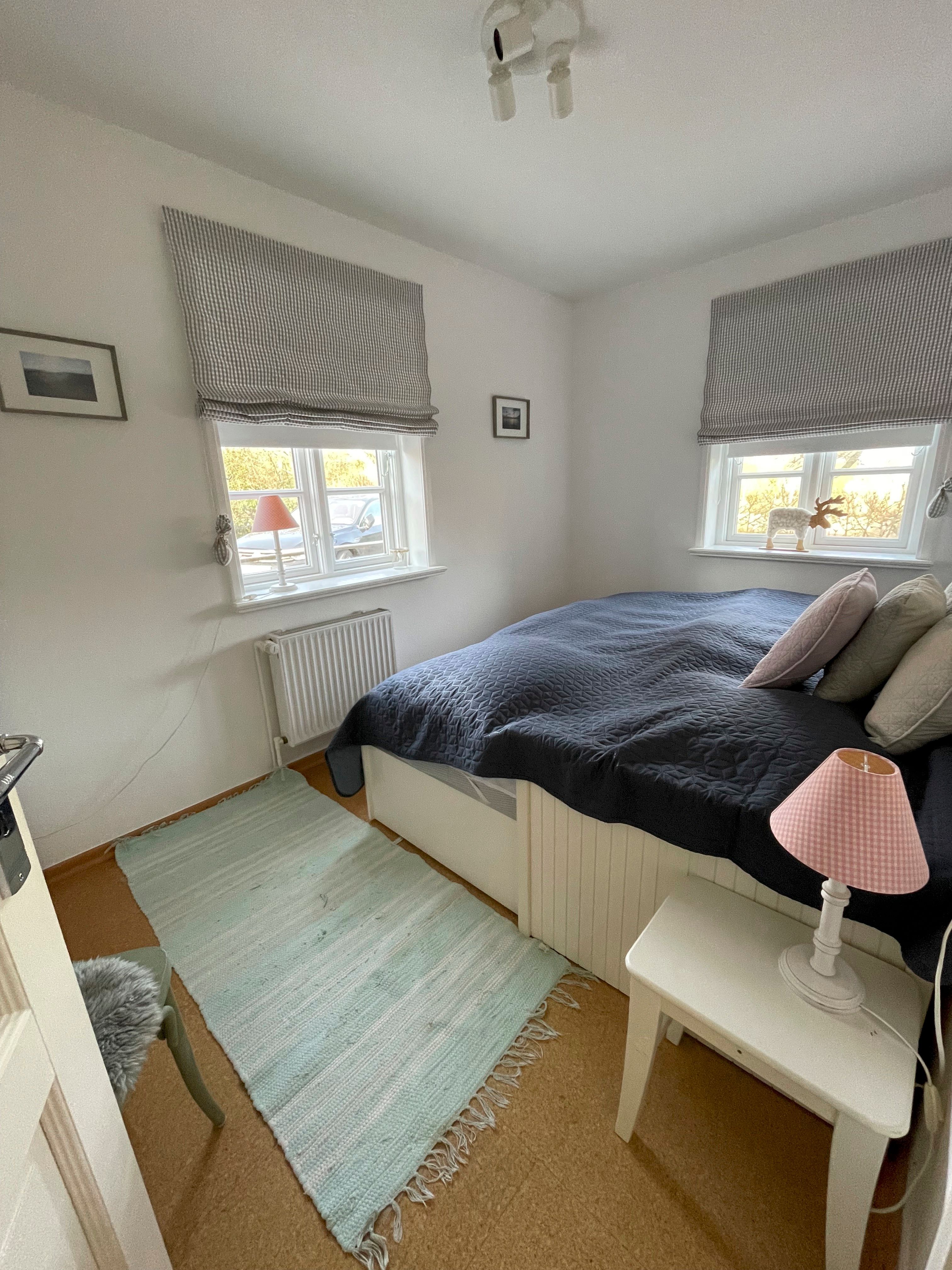 - 1 Schlafzimmer (Boxspringbett 1,80 m x 2 m), 1 Schlafzimmer mit Einzelbett (0,80 m x 2 m), 1 großzügiges Wohnzimmer, großzügige Küche, 1 Bad mit Dusche. Garten mit Gartenmöblen, Liegen, Strandkorb.