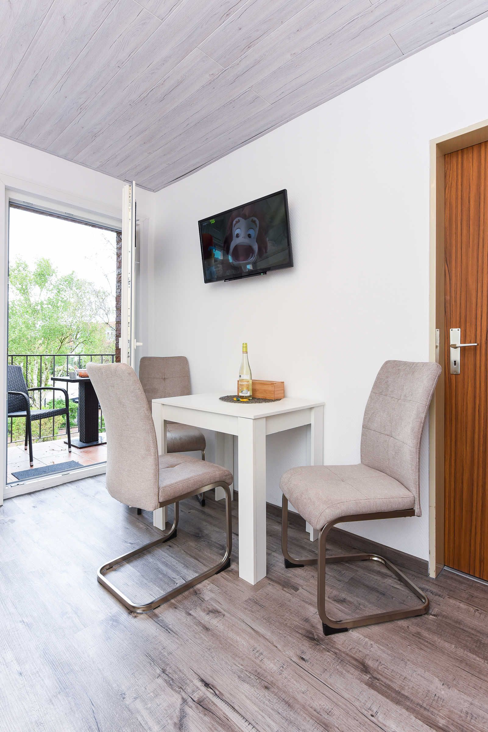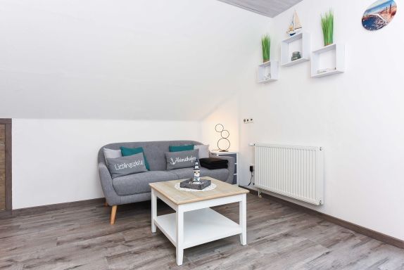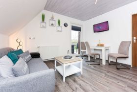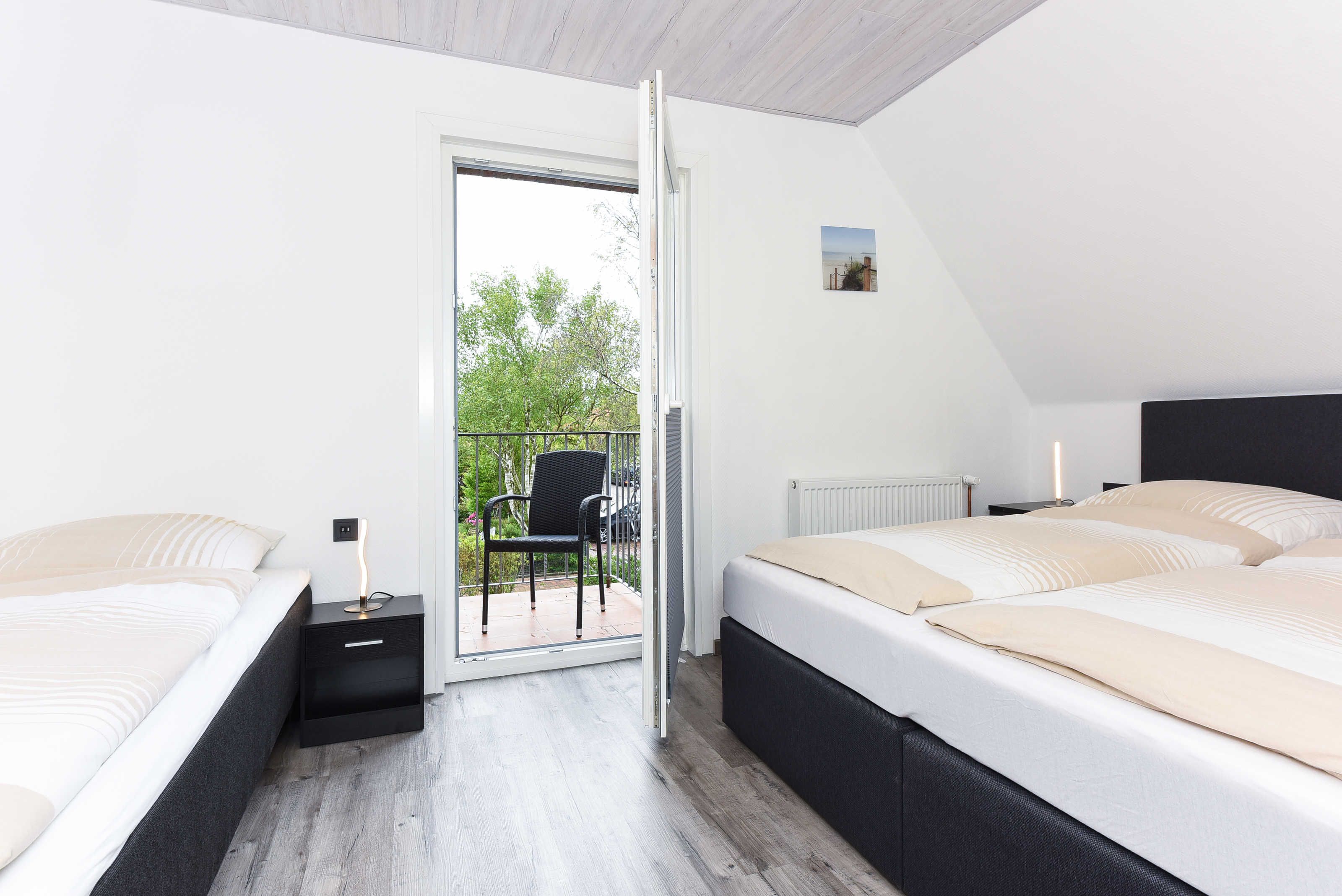 Die fünf Ferienwohnungen sind zwischen ungefähr 44 und ungefähr 35 Quadratmeter groß und für Ihren Urlaub mit 2 bis 3 Personen bestens geeignet. Das Apartment ist ungefähr 29 Quadratmeter groß und für 2 Personen sowie auch für Singles sehr gut geeignet. An unserem Haus gibt es zwei Gemeinschaftsterrassen für alle Wohnungen und das Apartment, eine vor dem Haus, dort steht auch ein schöner Strandkorb für Sie, und eine hinter dem Haus mit einer schönen Terrasse.