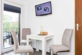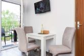Größe, ca. 38 Quadratmeter, Wohnraum mit integrierter Küche, Schlafzimmer, Badezimmer mit Dusche, Waschtisch und WC, Obergeschoss, Balkon, optimal für 1 bis 3 Personen und zusätzlich ein Kleinkind.