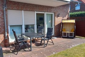 Liebevoll eingerichtet mit einer gemütlichen Terrasse in Strandnähe.