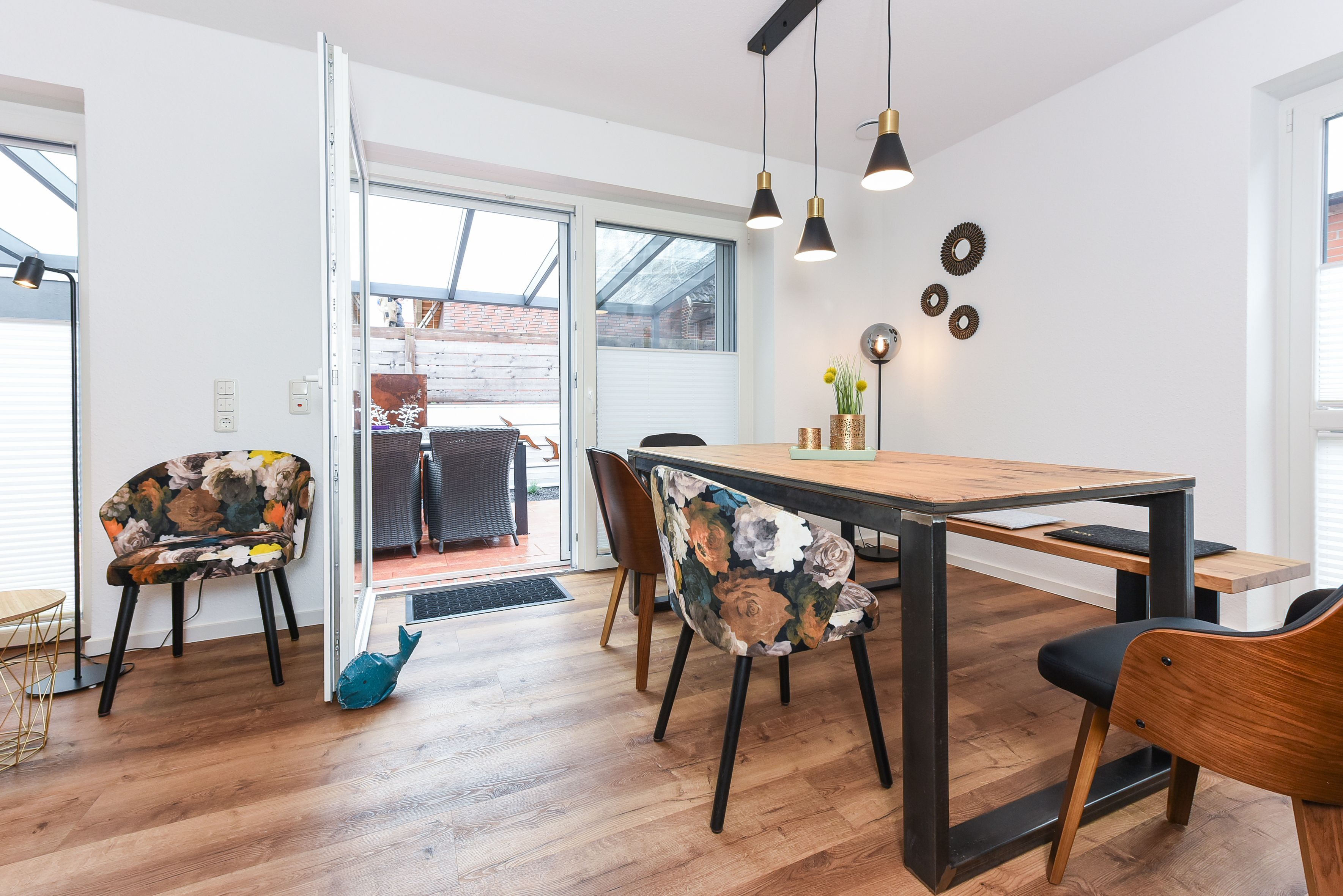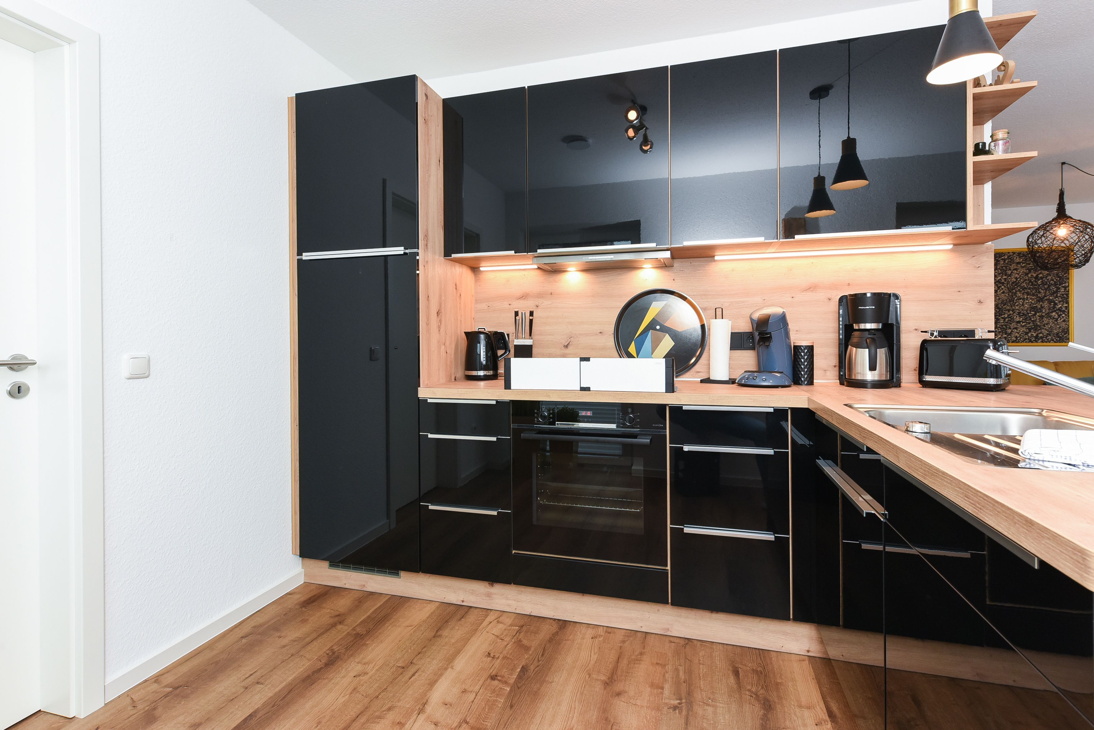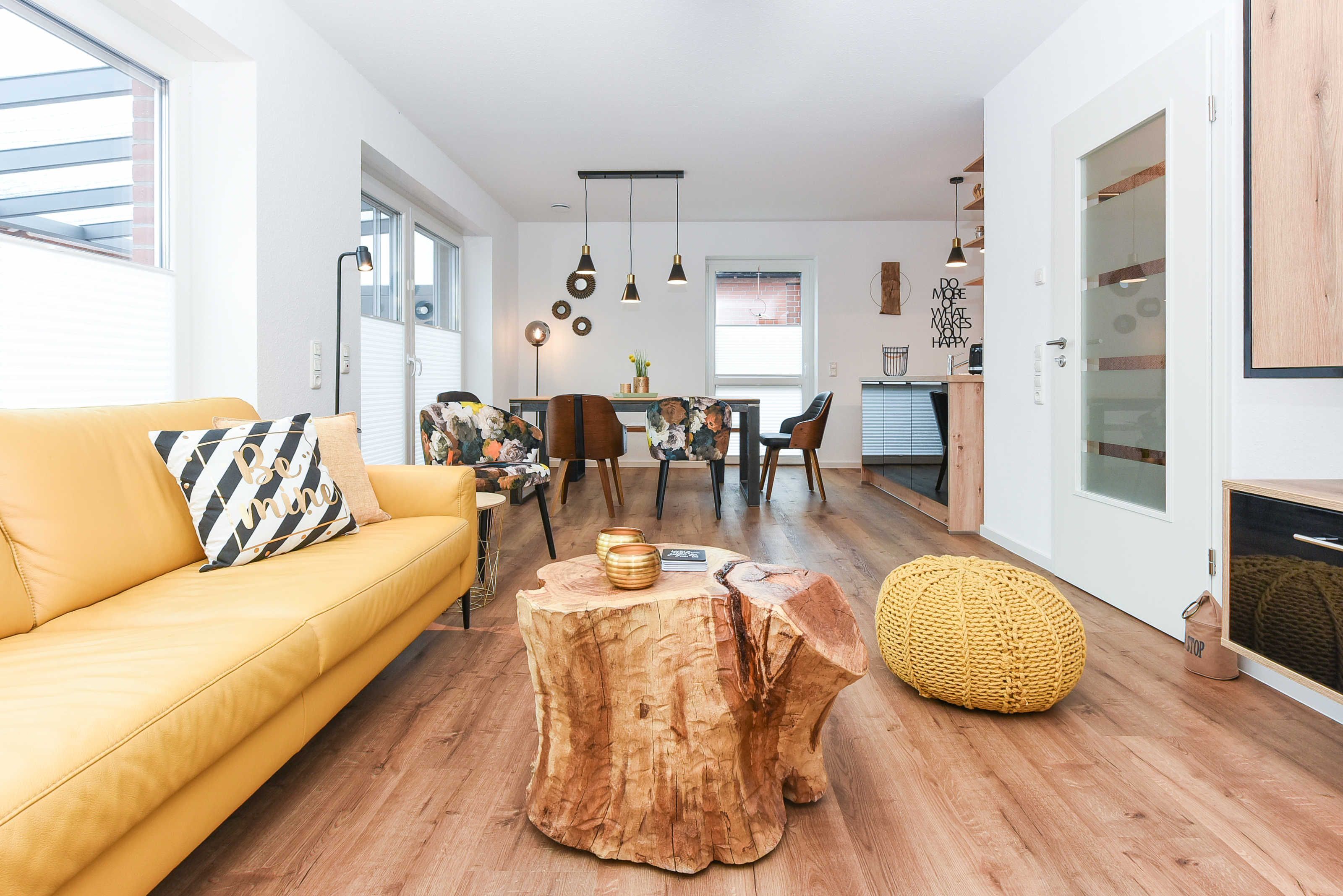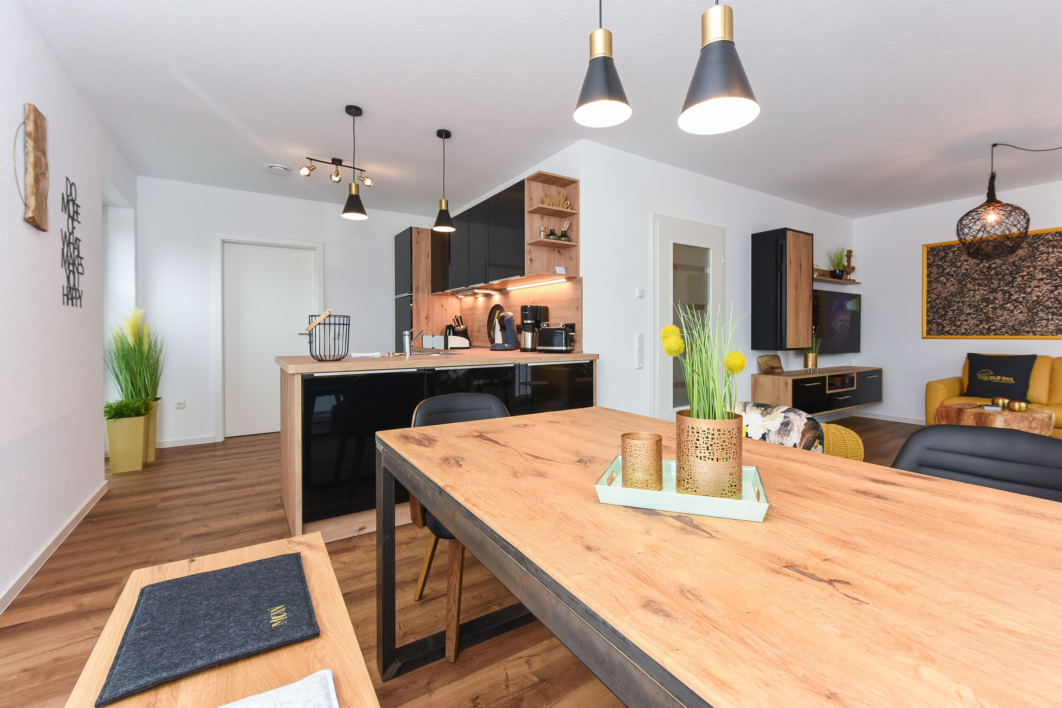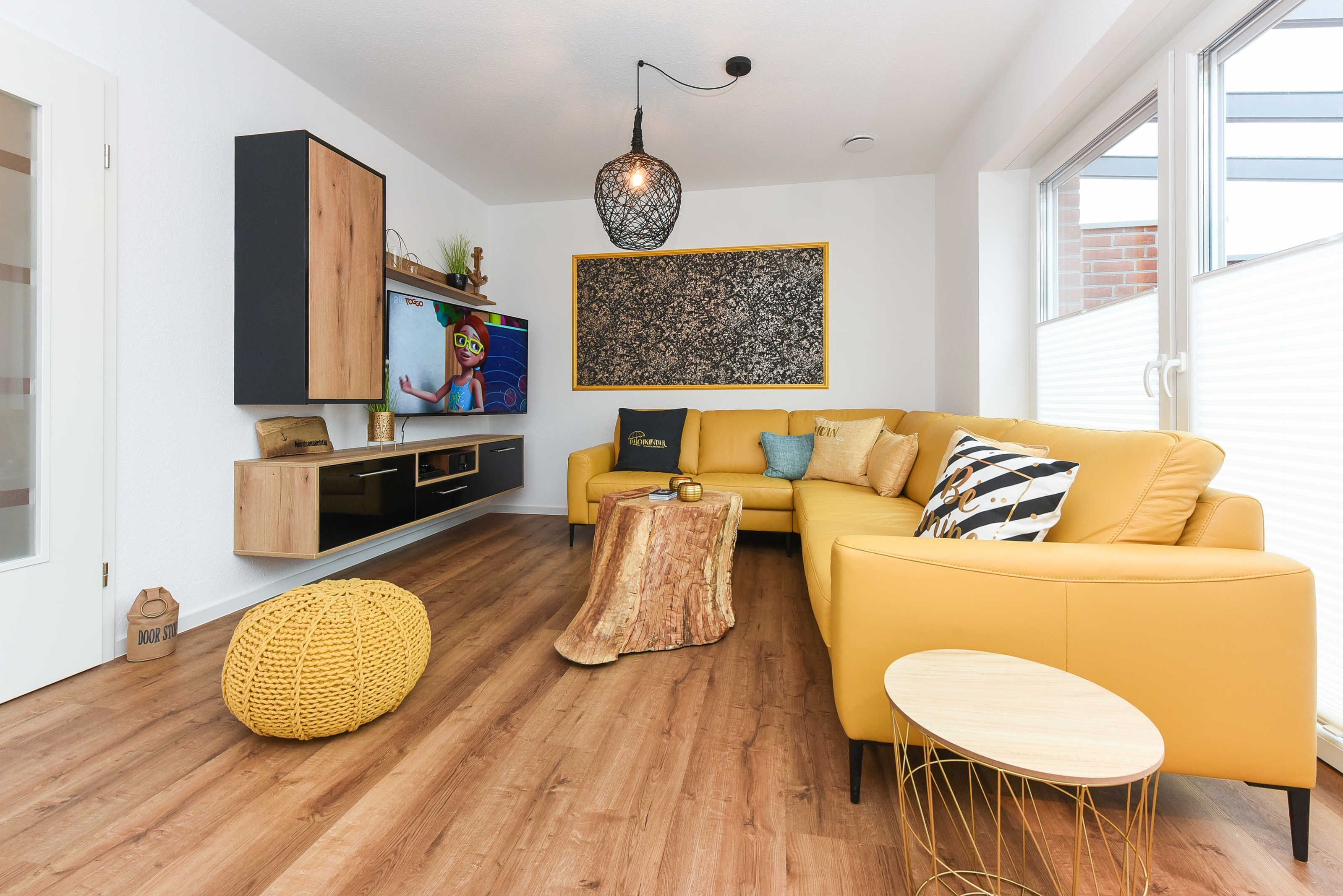 Das Ferienhaus ist modern-gemütlich, hell und freundlich gestaltet und eingerichtet sowie äußerst hochwertig mit viel Liebe zum Detail ausgestattet. Es verfügt zum Beispiel eine Terrasse, über eine ausgestattete moderne Küche mit Geschirrspülmaschine und Mikrowelle, und es stehen Waschmaschine und Wäschetrockner zum kostenlosen Benutzen bereit.