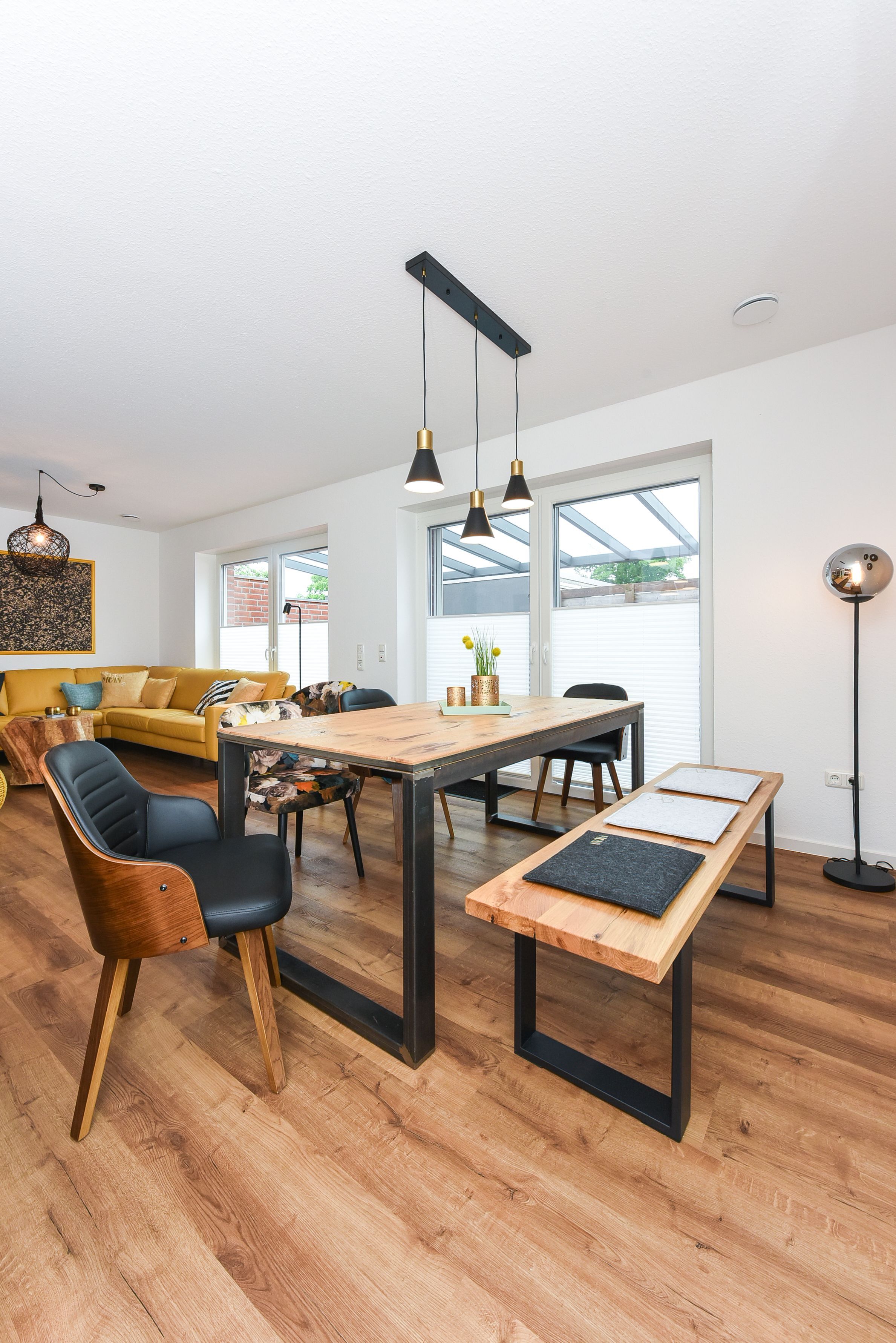 Wohnraum mit separatem Küchenteil bei offener Raumgestaltung